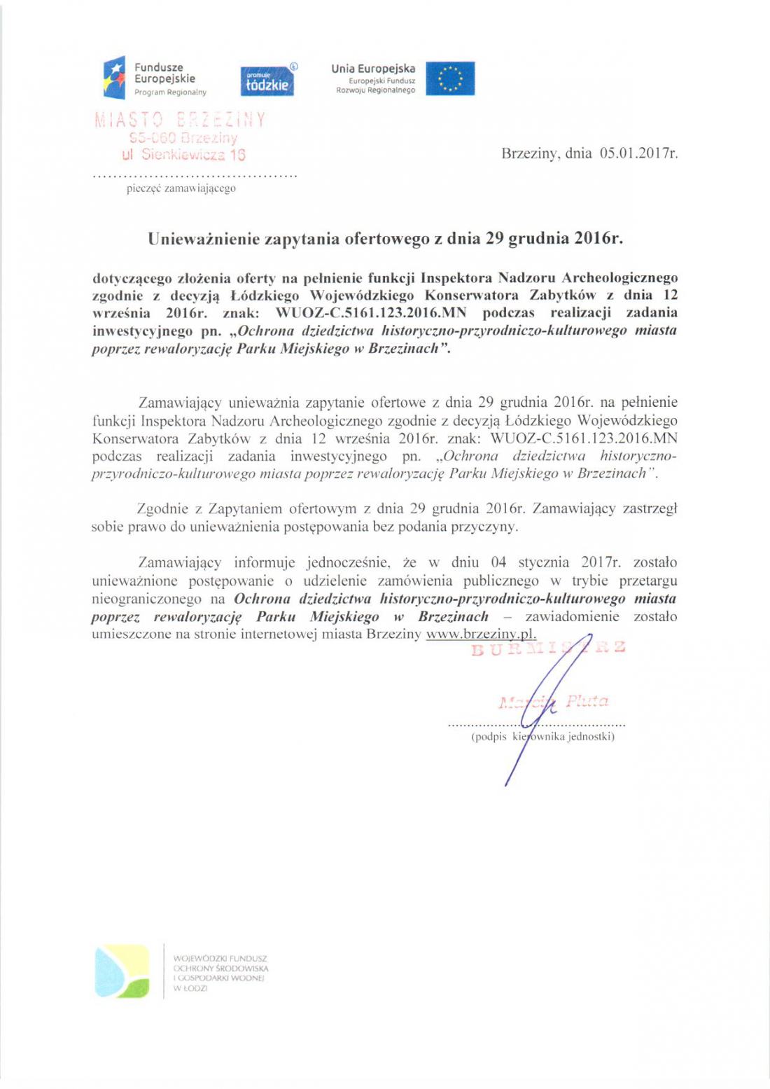 Unieważnienie zapytania ofertowego (ar)