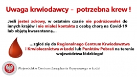 UWAGA KRWIODAWCY – POTRZEBNA KREW!
