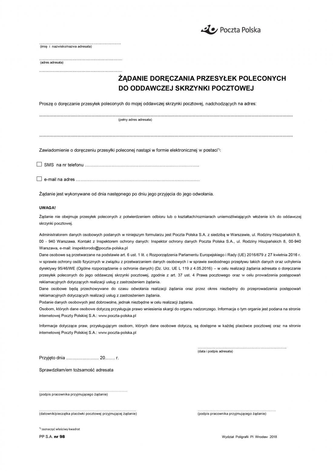 Obowiązek posiadania oddawczej skrzynki pocztowej