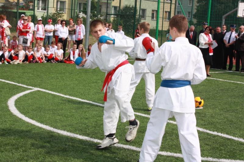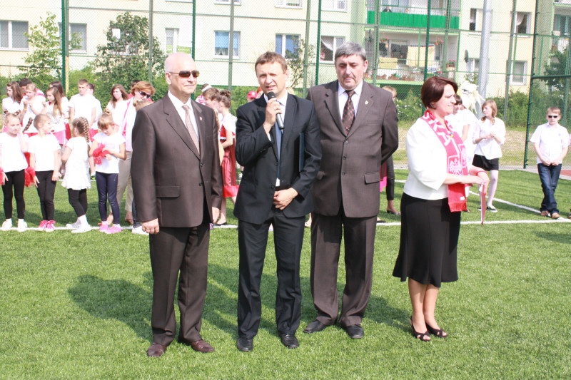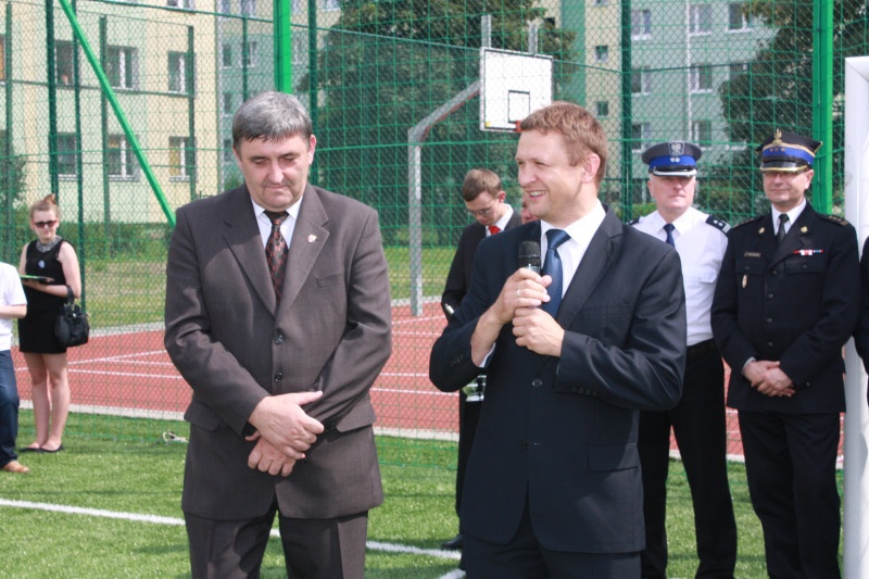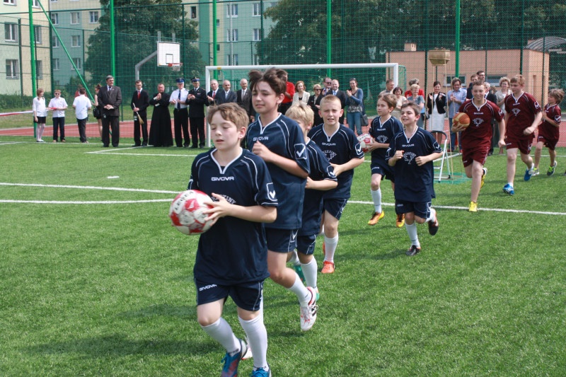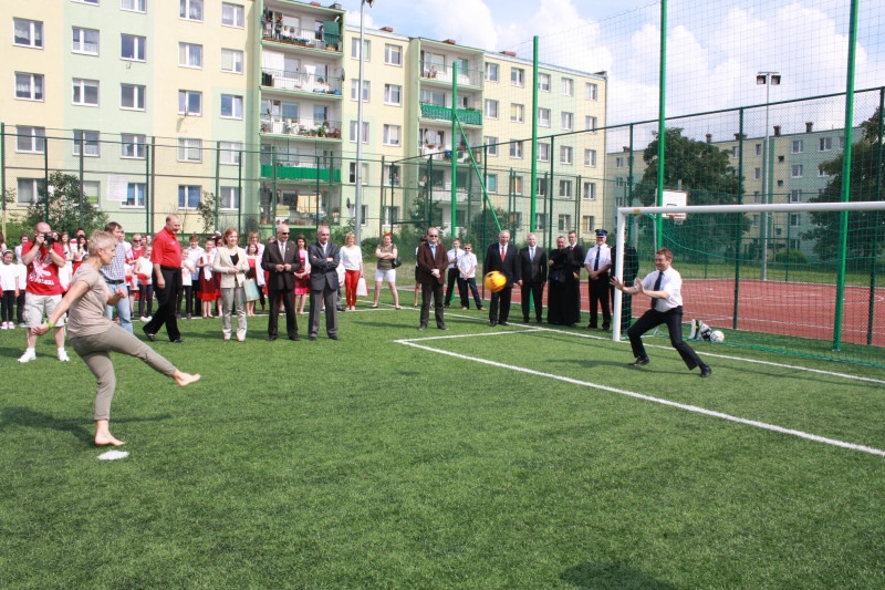 Piosenkę ,,Pięknie żyć” w wykonaniu Karoliny Bałys i Oli Jagielskiej poprzedziło przecięcie wstęgi, dokonane przez przedstawicieli parlamentu, sejmiku, powiatu i miasta, po którym nastąpiło zapalenia olimpijskiego znicza przez sztafetę sportowców. Oficjalna uroczystość otwarcia Kompleksu Boisk Sportowych Moje Boisko „ORLIK 2012” zakończyło honorowe strzały na bramkę. Pierwszego gola Janowi Tomaszewskiemu na tym boisku wbiła dyrektor Anna Mrówka.