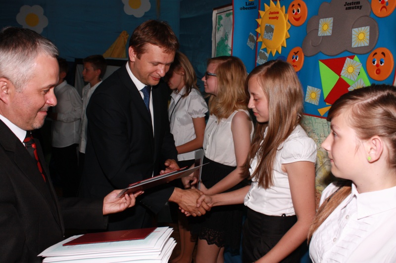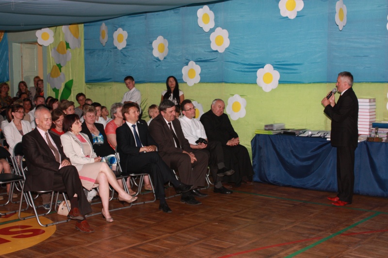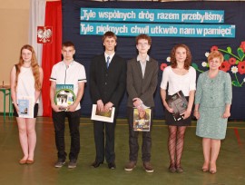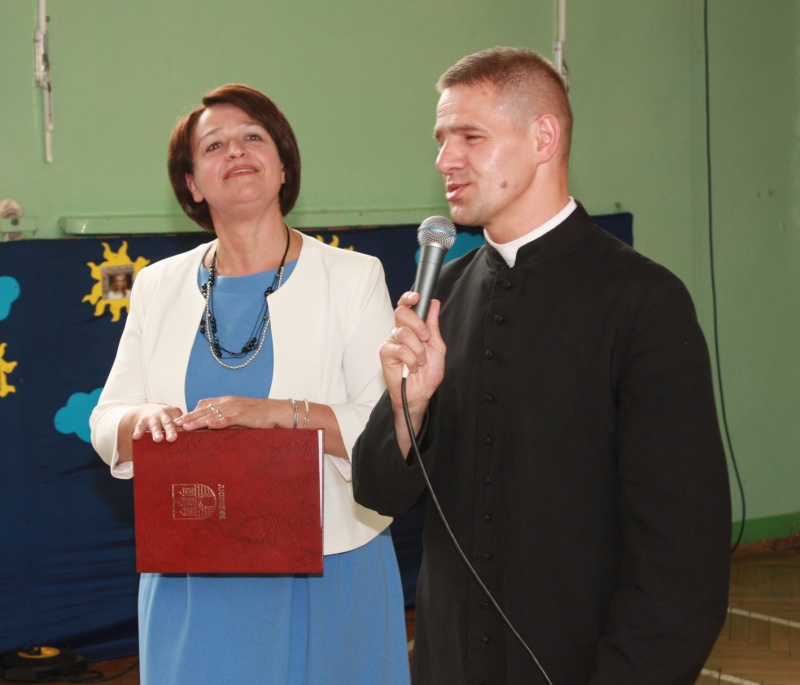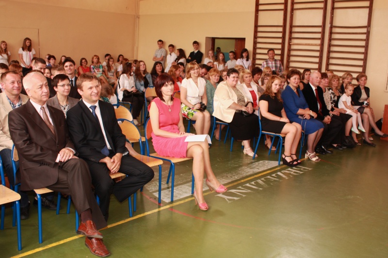 „Kończy się dla was pewien okres w życiu. Dziękuję wam za to, że odnosiliście sukcesy, że zawsze można było na was liczyć, że osiągnęliście tak wysokie wyniki w nauce. Dziękuję władzom miasta za pomoc, za życzliwą opiekę, dobre słowo i przychylność, a księdzu za opiekę duchową nad gimnazjalistami i duchowe wsparcie. Dziękuję nauczycielom – dzięki ich pracy wy osiągaliście sukcesy. Życzę wam powodzenia, sukcesów w dalszej nauce i proszę, abyście nas jak najczęściej odwiedzali” – mówiła dyrektor Małgorzata Filipiak.