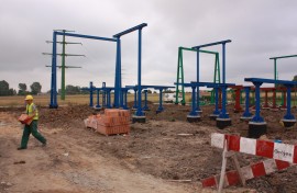 W naszym mieście trwają prace związane z budową stacji transformatorowo - rozdzielczej o napięciu 110kV/15kV. Na początku wybudowano drogę techniczną z płyt betonowych, stanowiącą przedłużenie ul. Zdrowie, tak aby na podmokły teren mógł wjechać sprzęt budowlany i samochody przewożące ciężkie komponenty elektryczne.