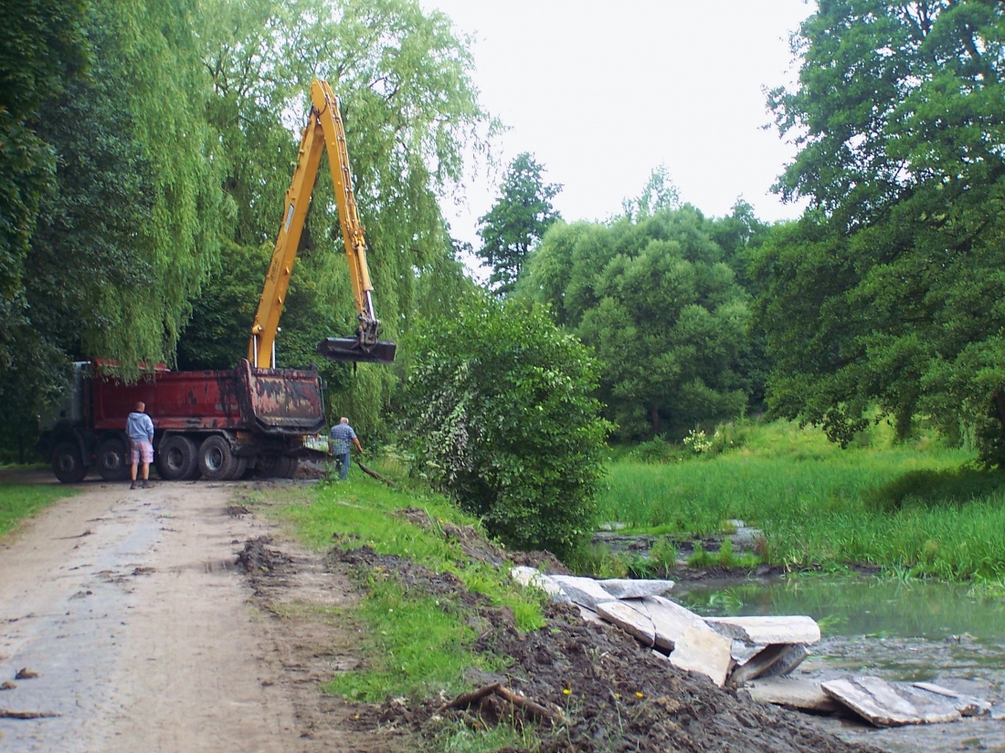 22 lipca br. przystąpiono do odmulania dna stawu. Dno ma być pogłębione od 40 do 80 centymetrów.