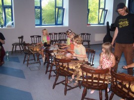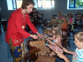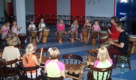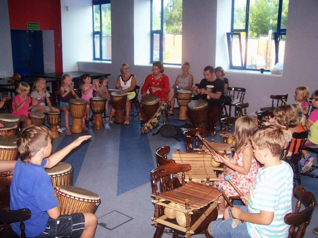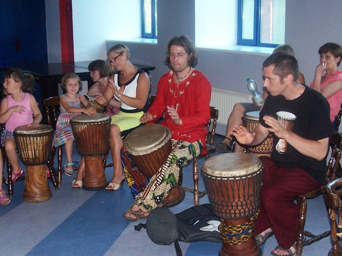 Zajęciach, które odbyły się 27 lipca prowadziło trzech muzyków. Kuba Pogorzelski, Gwidon Cybulski i Sebastian Wielądek z grupy „Wielbłądy” specjalizują się w grze na afrykańskich bębnach i balafonach. W czasie spotkania muzycy przygotowywali dzieci do niedzielnego występu w Arboretum w Rogowie w ramach Wędrownego Festiwalu Filharmonii Łódzkiej.