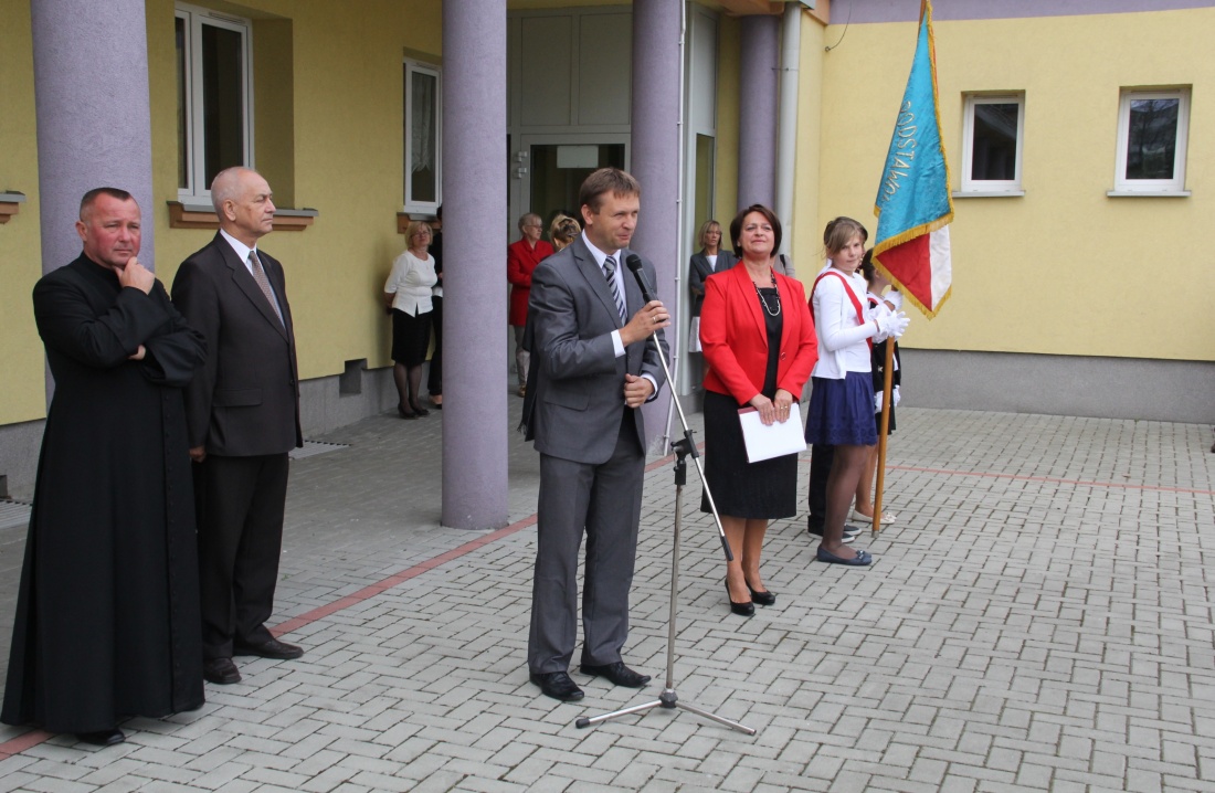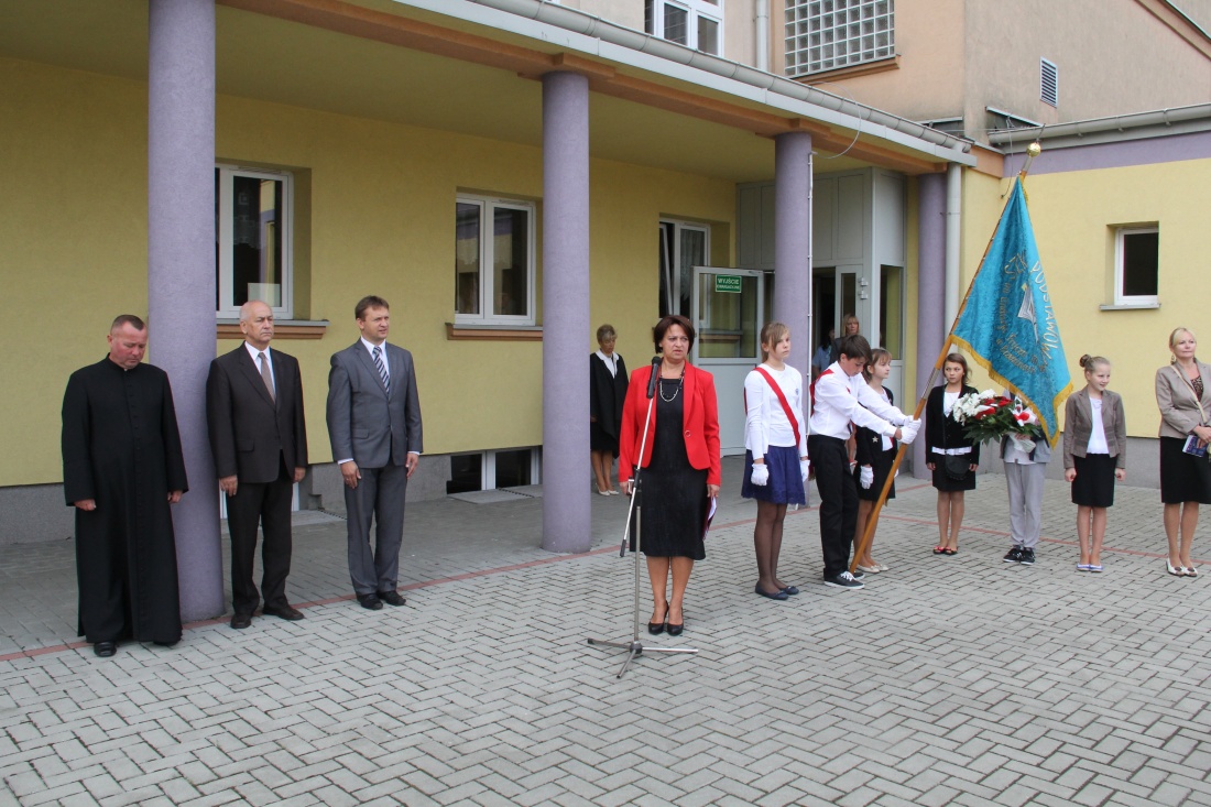 „Dwa miesiące temu żegnaliśmy się na tym Orliku. Nadszedł czas, aby ponownie otworzyć podręczniki i zeszyty. Szczególnie miło witam uczniów, którzy do szkoły przyszli po raz pierwszy. Głównym naszym celem będzie wychowywanie. Chcielibyśmy, aby uczniowie klas VI mówili, że w Jedynce było fajnie, ale żeby dodawali, że stali się tam dobrymi ludźmi. Nowy rok szkolny witamy w odnowionej szkole dzięki finansom z Urzędu Miasta – jedna z sal ma odnowioną podłogę, odnowiliśmy hol, a szkoła zyska nową bramę wjazdową” – dyrektor szkoły Zbigniew Zieliński.