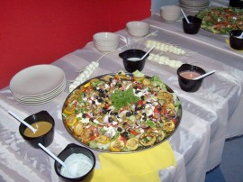 Ciekawym punktem i zarazem dopełnieniem prezentacji była degustacja dań przygotowanych specjalnie na tę okazję przez pracowników Baru Brzezinka. Bioracy udział w spotkaniu seniorzy mogli skorzystać z bogatej oferty przygotowanej przez restaurację. Lunchy, składające się z sałatek na bazie sałaty lodowej, z dodatkiem oliwek, czerwonej cebuli, pomidorów, ogórków, kurczaka pieczonego, łososia i grillowanego boczku cieszyły się dużym powodzeniem ze względu na dużą zawartośc witamin i składników odżywczych. Ponadto Bar Brzezinka przygotował dania obiadowe. W skład tego menu weszły m.in. schab z pieczarkami, filet po hawajsku z ananasem i serem, gołąbki w sosie oraz zestaw surówek i pieczone ziemniaki.