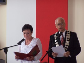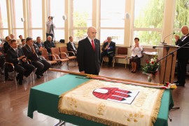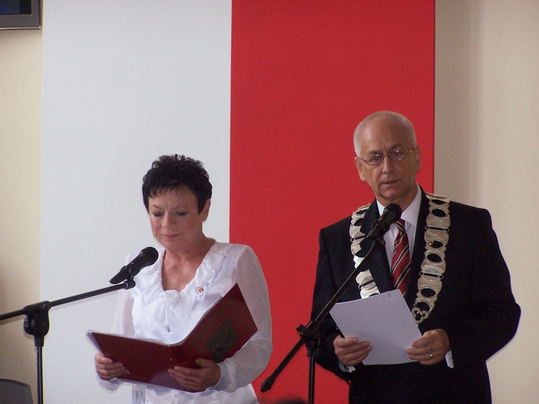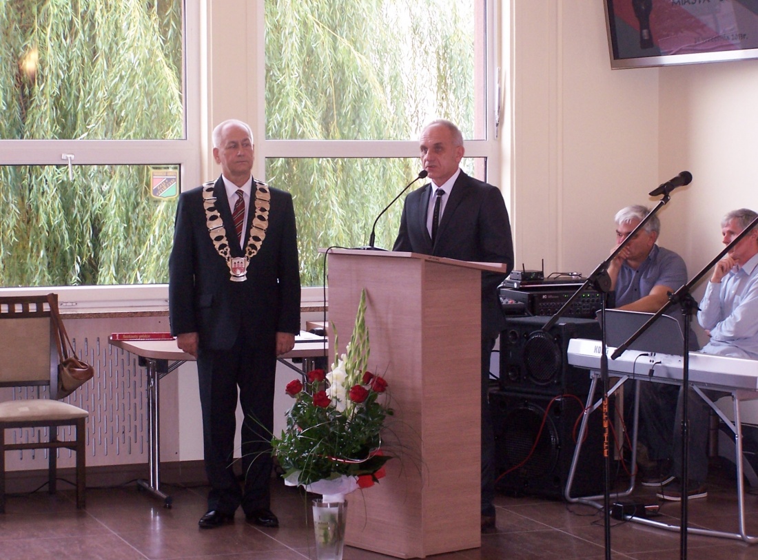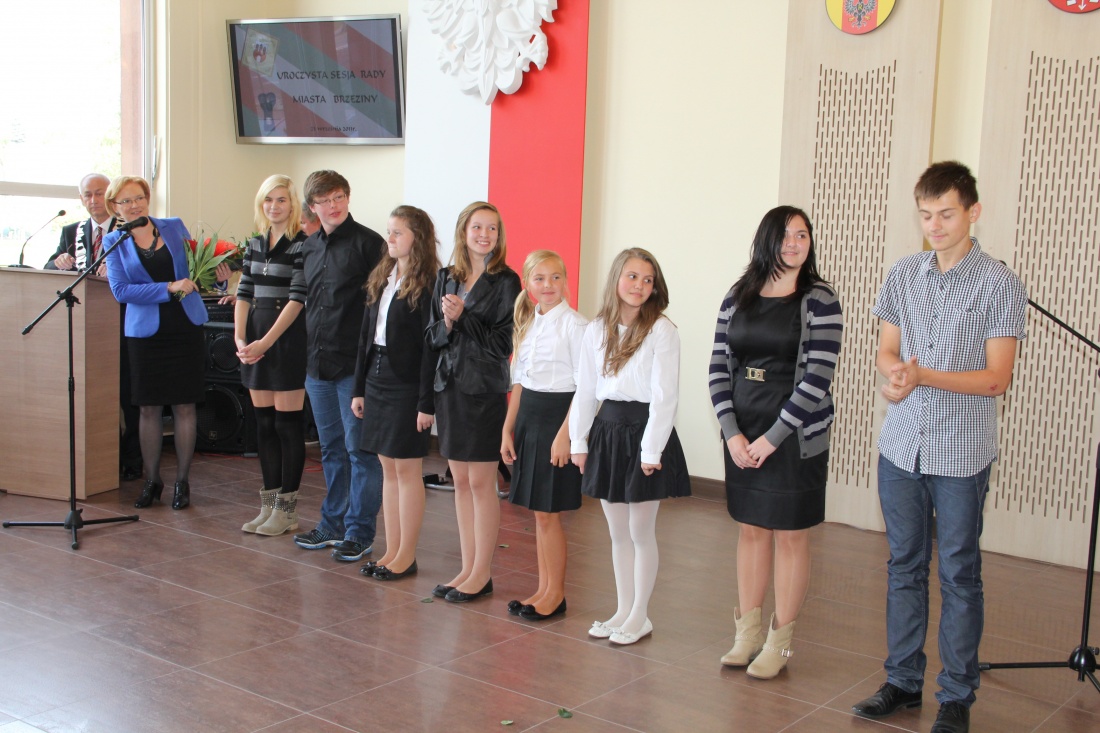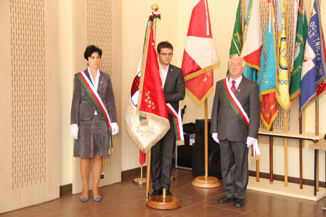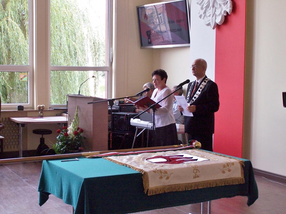 Uroczysta sesja składała się dwóch części – w pierwszej nastąpiło przekazanie sztandaru, w drugiej wręczenie Teresie Szymczak insygniów Honorowej Obywatelki Miasta Brzeziny.