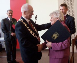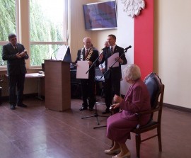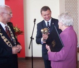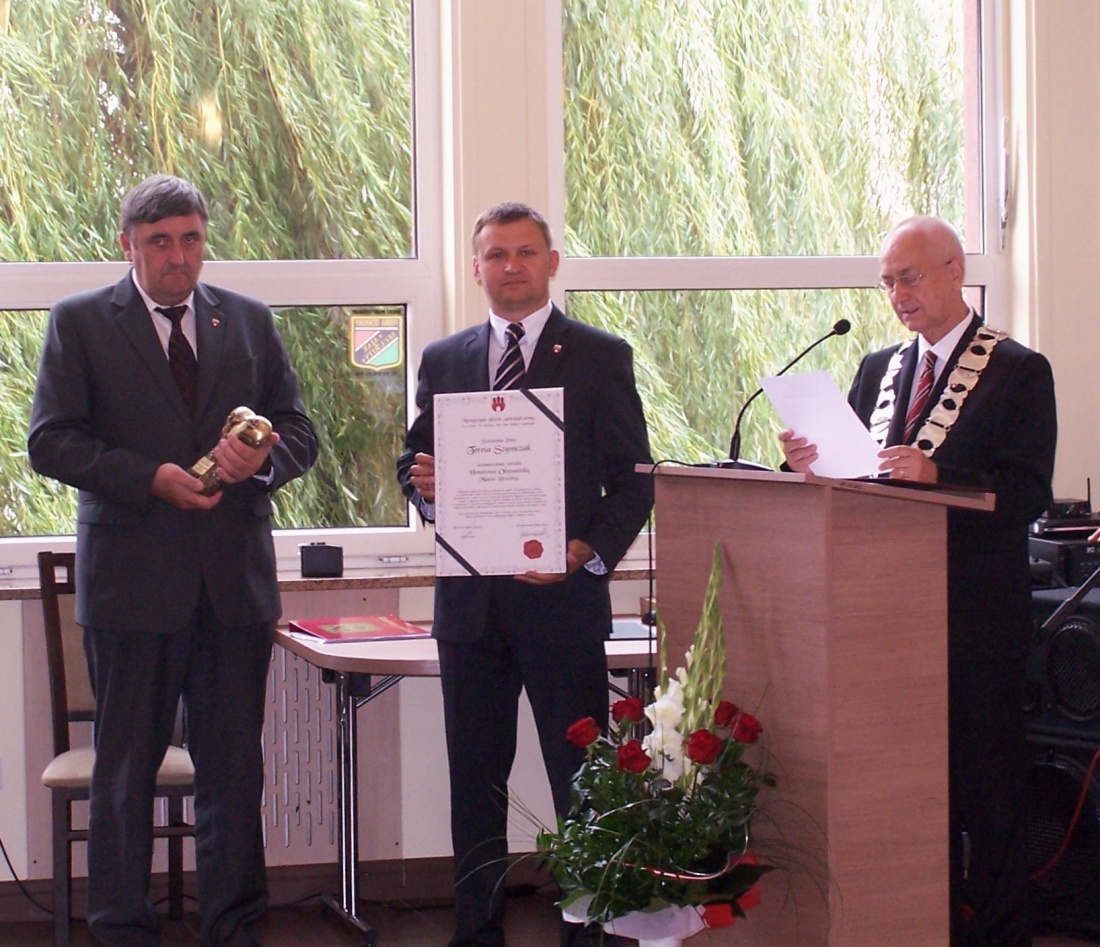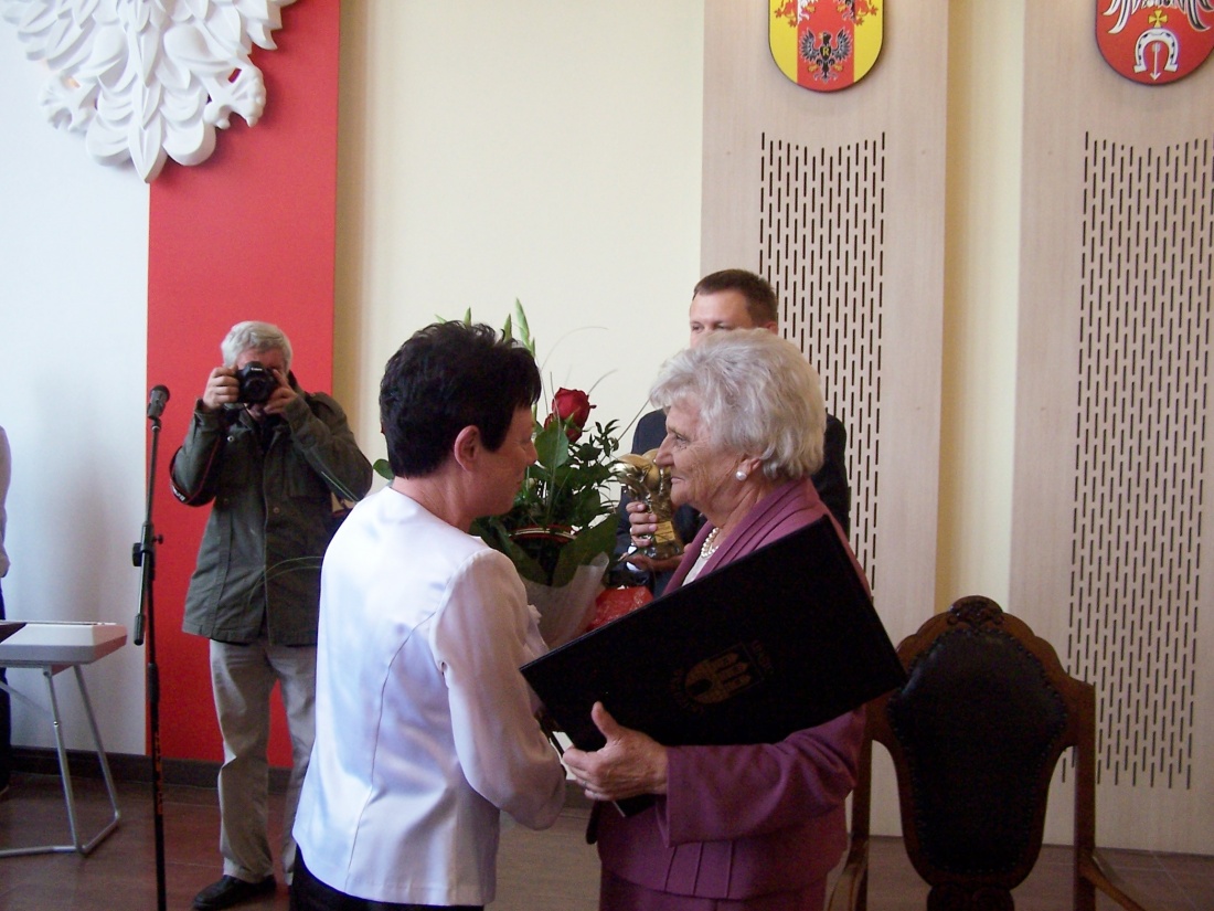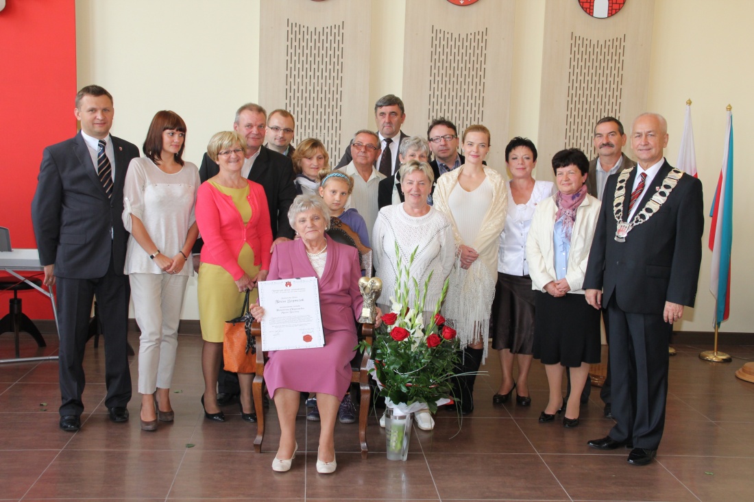 Po odczytaniu treści wniosku o nadanie tytułu Honorowej Obywatelki Miasta Brzeziny przez wiceprzewodniczącą Rady Zofię Krawczyk, na mocy uchwały Rady Miasta Brzeziny z dnia 29 sierpnia 2013 r. w sprawie nadania tytułu Honorowej Obywatelki Miasta Brzeziny przedstawionej przez przewodniczącego Rady Zbigniewa Bączyńskiego, burmistrz Marcin Pluta wspólnie z zastępcą Romanem Sasinem wręczyli Honorowej Obywatelce Miasta Brzeziny atrybuty – akt nadania oraz statuetkę.