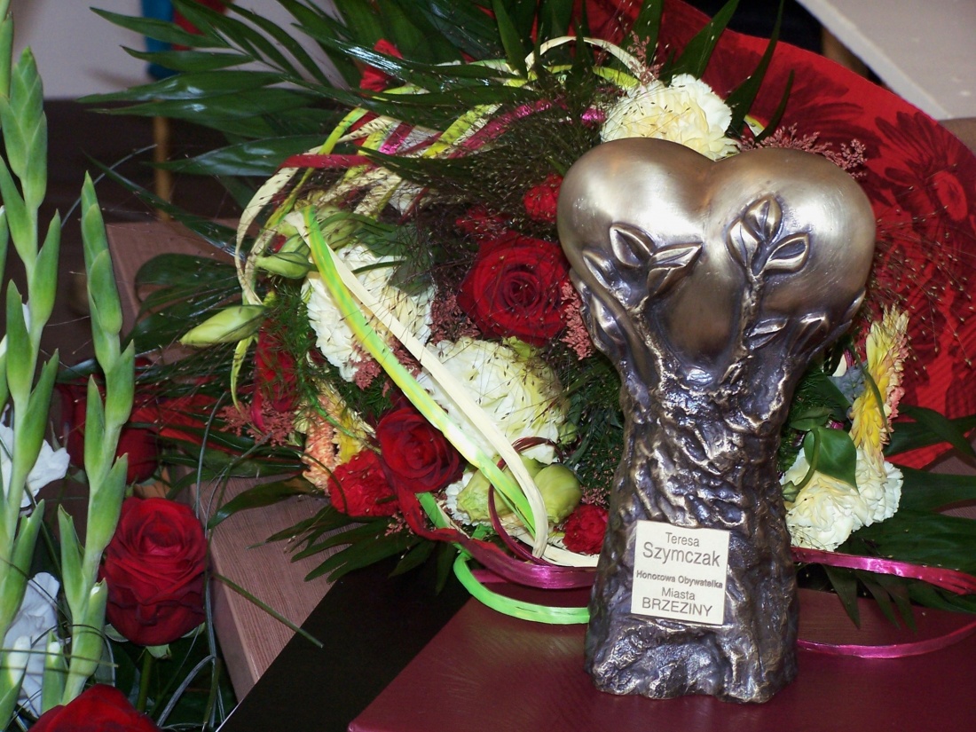 „Dziękuję przewodniczącemu Rady, radnym i wszystkim mieszkańcom miasta i powiatu brzezińskiego. Stowarzyszenie nie otrzymuje żadnej dotacji, pomagają nam ludzie, ludzie, którzy mogą pomóc, a trzeba pomóc tym, którzy tej pomocy potrzebują. Jako małe dziecko zapamiętałam słowa ojca, który wrócił z Oświęcimia – córko pamiętaj, skórką chleba trzeba się dzielić z każdym. Dziękuję wszystkim z całego serca” – powiedziała Teresa Szymczak, odbierając statuetkę Honorowej Obywatelki Miasta Brzeziny.