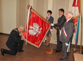 „To wielki dzień w życiu społeczności miasta Brzeziny, ale także całego powiatu. Gratuluję mieszkańcom miasta, że mogą się od tej chwili gromadzić pod tym sztandarem, bo sztandar to duma, to honor, to także miejsce zjednoczenia wszystkich mieszkańców wokół wspólnej idei. Bądźcie dumni, szanujcie sztandar” – mówił starosta brzeziński Edmund Kotecki.