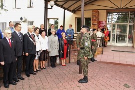 Uroczystą sesję Rady Miasta Brzeziny poprzedziło wciągnięcie flagi państwowej na maszt przed siedzibą Urzędu Miasta przy ul. Sienkiewicza 16.