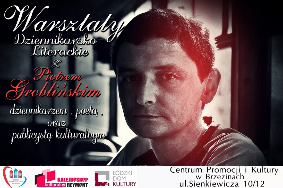 Bezpłatne warsztaty dziennikarsko - literackie, prowadzone przez Piotra Groblińskiego rozpoczną się 24 października br. w siedzibie Centrum Promocji i Kultury w Brzezinach przy ul. Sienkiewicza 10/12, o godz. 17.
