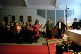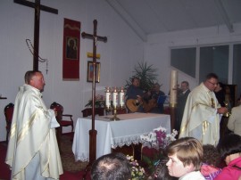 W dalszej części nabożeństwa przygotowanego przez członków Domowego Kościoła, za pomocą prezentacji multimedialnej przytaczano krótkie fragmenty papieskich przemówień. Całość uświetniał śpiew ulubionych pieśni oazowych papieża w wykonaniu scholi oraz muzyka gitar i skrzypiec.