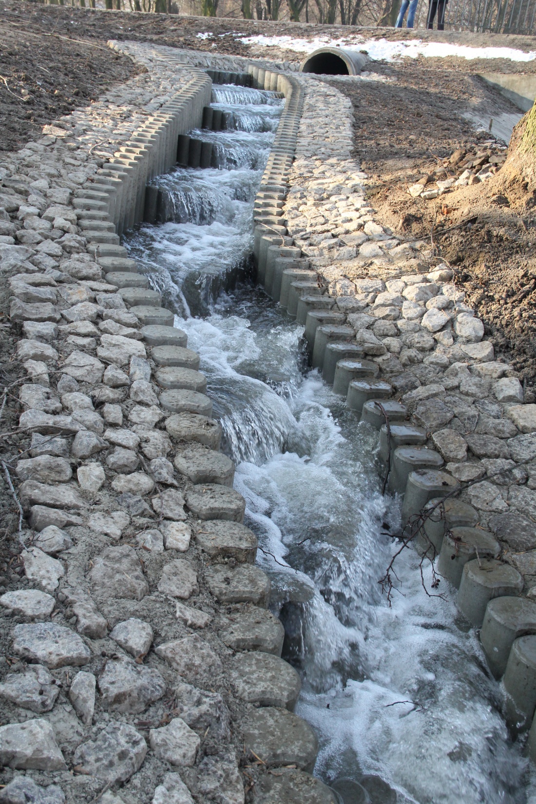W ramach inwestycji dokonano odmulenia dna stawu, uformowano i umocowano skarpy stawu za pomocą tzw. mat gabionowych – kamieni w siatce stalowej, wybudowano bystrotok, odtworzono i zmodernizowano ścieżki parkowe zniszczone przy renowacji stawu, a także powiększono wyspę w kierunku wschodnim. Odbudowane zostały także schody widokowe umożliwiające bezpieczne dojście do wody.