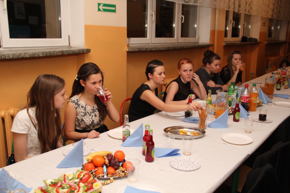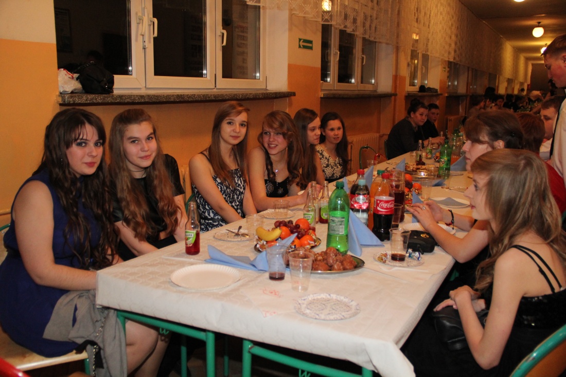 Po oficjalnym otwarciu imprezy do wspólnej zabawy trzecioklasistów zaprosił profesjonalny didżej. W przerwach między tańcami, uczestnicy balu posilali się przy długim stole biesiadnym usytuowanym na szkolnym korytarzu.