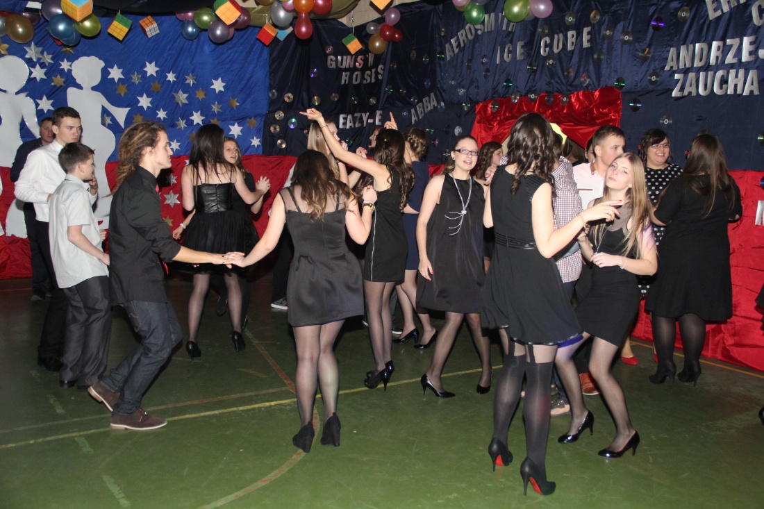 W zabawie uczestniczyło 99 uczniów czterech klas trzecich oraz nauczyciele. W tym roku wystrój sali, nawiązywał do szalonych lat osiemdziesiątych. Impreza trwała do godz. 23.30.