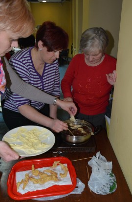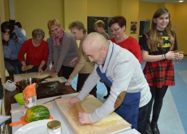 5 lutego br. w zajęciach uczestniczyli: z-ca burmistrza Roman Sasin oraz radny Tadeusz Barucki. Samorządowcy nie tylko degustowali przyrządzone dania, ale i sami włączyli się w prace kulinarne.