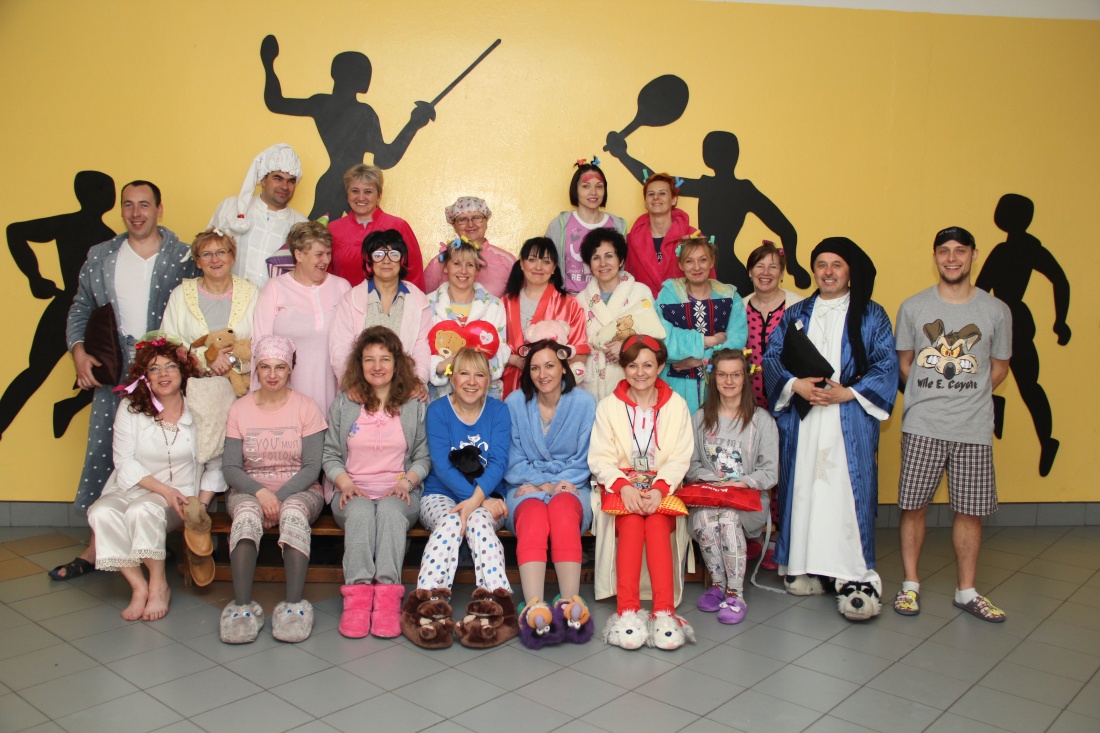 Natomiast zarówno nauczyciele, jak i pracownicy obsługi przebrali się za śpiochów.