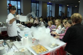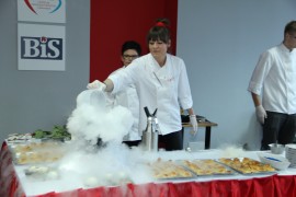 Pokaz obejmował przygotowanie dań z kuchni molekularnej, której specyfiką jest wydobycie jak najbardziej naturalnego smaku lub kształtu produktów metodami nie zawsze stosowanymi na co dzień w kuchni np. za pomocą sferyfikacji polegającej na kontrolowanym żelowaniu płynu , który po zanurzeniu w kąpieli zmienia stan skupienia i z płynu tworzą się kuleczki owocowego kawioru.