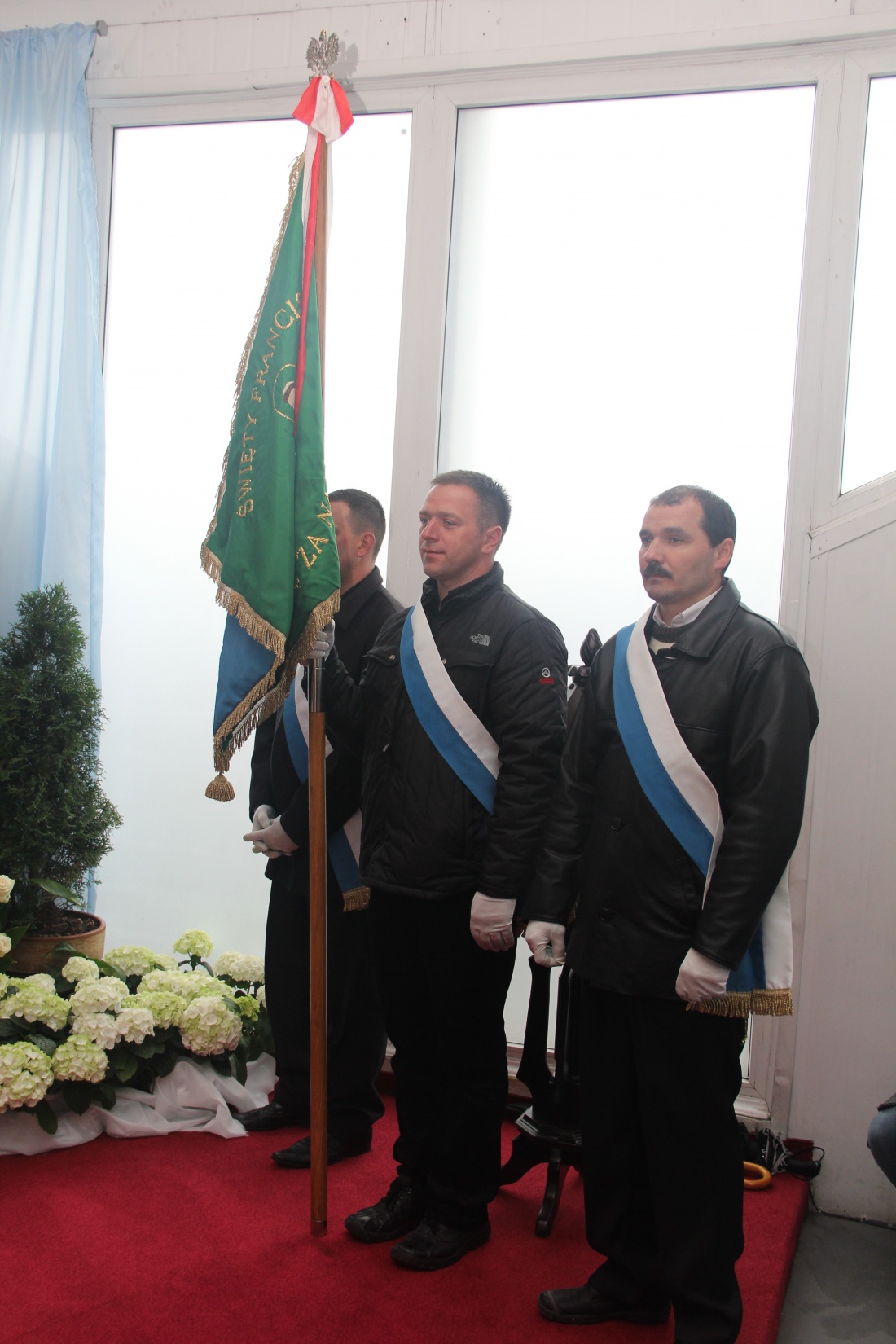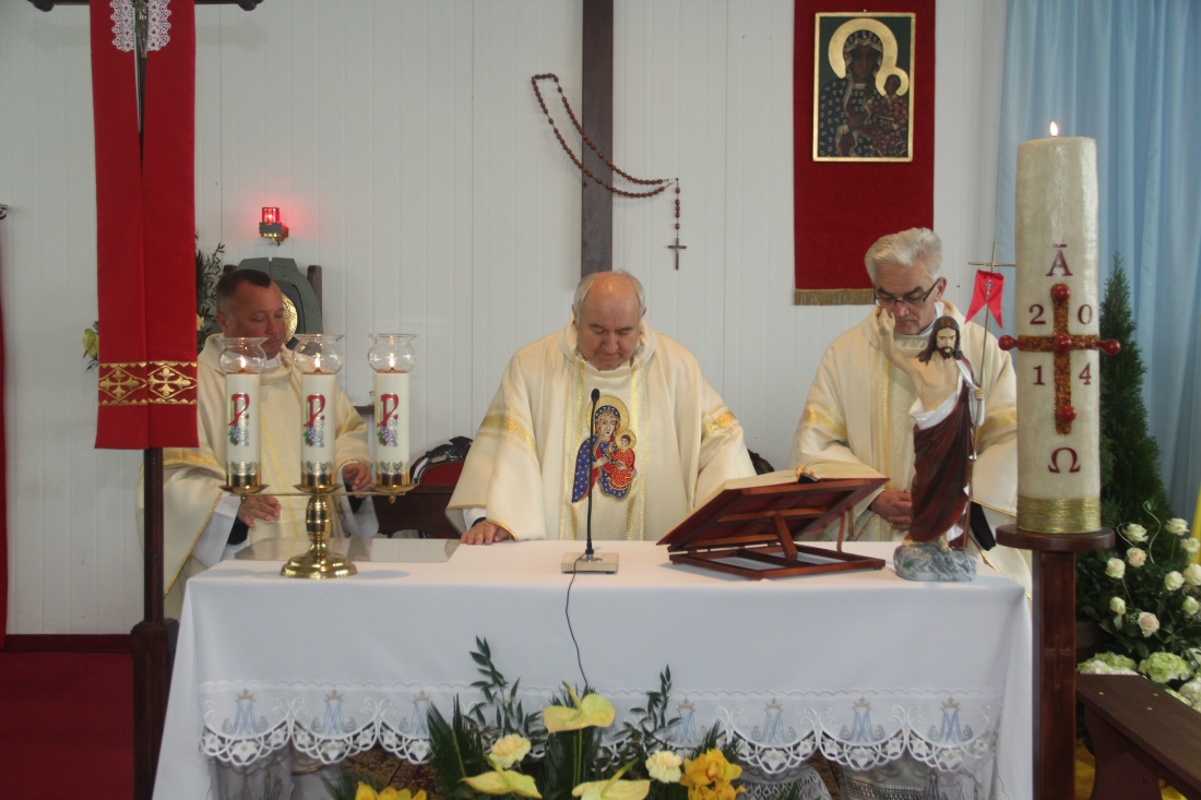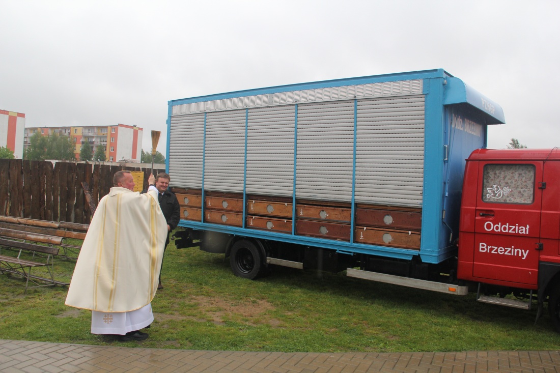 W czasie mszy św. nastąpiło poświęcenie sztandaru i nowego samochodu Polskiego Związku Hodowców Gołębi Pocztowych oddziału w Brzezinach.