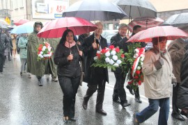 Uczestnicy przemaszerowali pod pomnik Marszałka J. Piłsudskiego, gdzie poszczególne delegacje złożyły kwiaty.