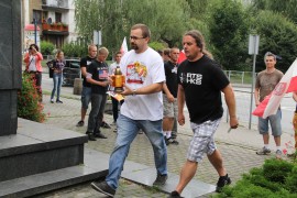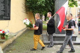 Po zakończeniu dźwięku syren zebrani pod pomnikiem złożyli wiązankę kwiatów i zapalili znicze przed tablicą upamiętniającą żołnierzy września i Polski Walczącej.