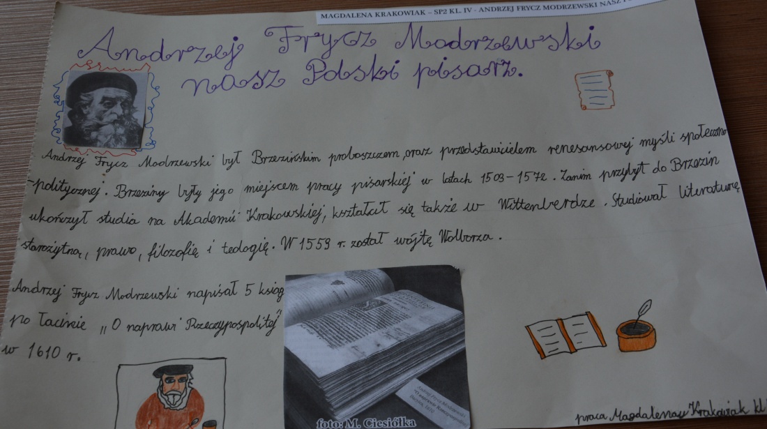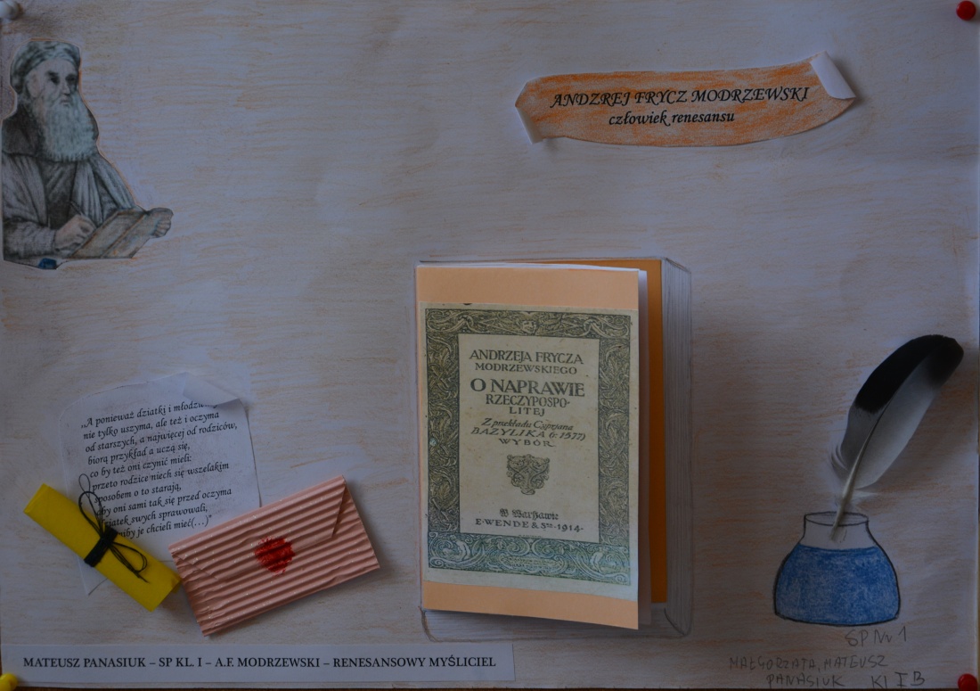 II miejsce: Mateusz Panasiuk kl. I SP nr 1 „A. F. Modrzewski. Renesansowy myśliciel”.