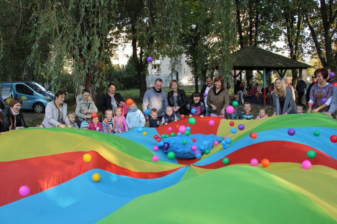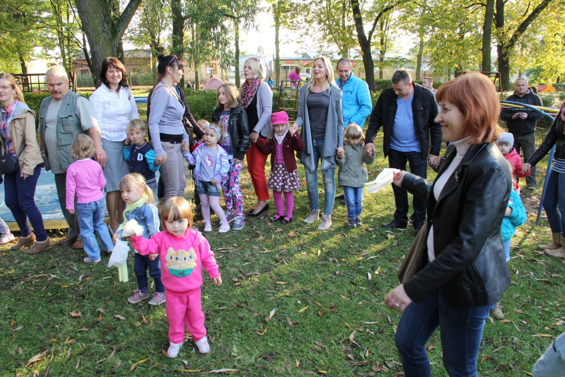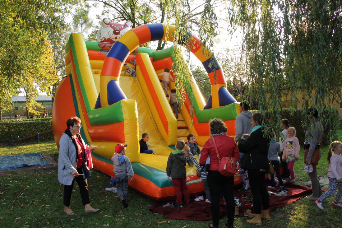 O 15.30 uczestnicy przedszkolnego święta rozpoczęli zabawę prowadzoną przez animatorów. Liczne tańce, zabawy i konkursy przyniosły zarówno dzieciom, jak i rodzicom wiele pozytywnych wrażeń, dostarczyły niesamowitych emocji i wiele uśmiechu. Ponadto dzieci i rodzice mogli wykazać się dużą wyobraźnią i pomysłowością w pracach plastyczno - technicznych, tworząc „Cudaki – kartoflaki” i inne stworki z wykorzystaniem ziemniaków, kasztanów, żołędzi i innych darów jesieni. Wielką atrakcją było pojawienie się Jajka Niespodzianki, które rozdawało dzieciom cukierki i książeczki do kolorowania.