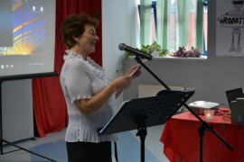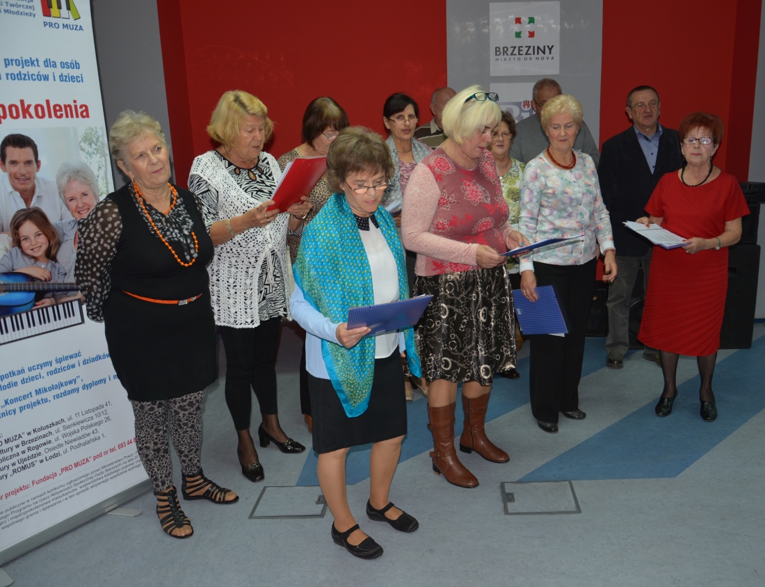 Następnie seniorzy wysłuchali występu uczestników projektu "Muzyka łączy pokolenia", którzy zaprezentowali się w trzech przebojach. W bogatym programie znalazły się także: transmisja on - line z prowadzącymi program "Wideoteka dorosłego człowieka", wspólne śpiewy, recytacja wierszy w wykonaniu brzezinianki Czesławy Dziedzic.