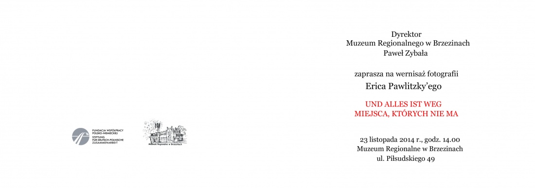- wernisaż wystawy UND ALLES IST WEG - MIEJSCA, KTÓRYCH NIE MA Erica Pawlitzkyego