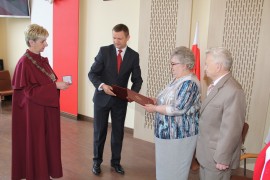 Następnie dokonano wręczenia medali za długoletnie pożycie dwóm parom małżeńskim: Mariannie i Zdzisławowi Marczakom oraz Wiesławie i Marianowi Sobkiewiczom. Obydwie pary zawarły związek małżenski 3 lipca 1965 r. w Urzędzie Stanu Cywilnego w Brzezinach.