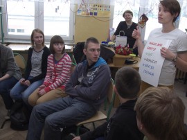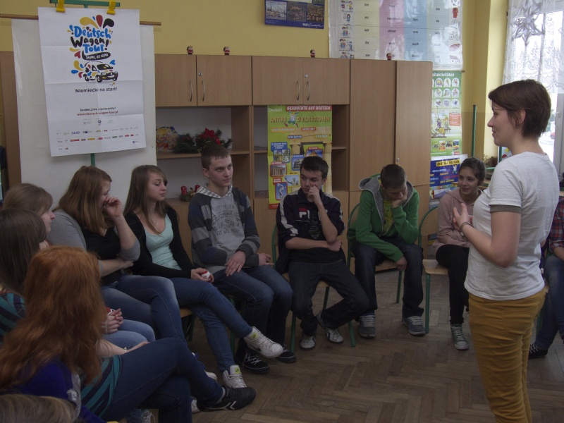 Do gimnazjum zaprosiła niecodziennego gościa nauczycielka języka niemieckiego Grażyna Bączyńska. Po długim oczekiwaniu gimnazjalistów odwiedziła lektorka Karolina Jagodzinski, urodzona w Polsce, lecz prawie całe życie mieszkająca w Niemczech, aby motywować uczniów do nauki języka niemieckiego.