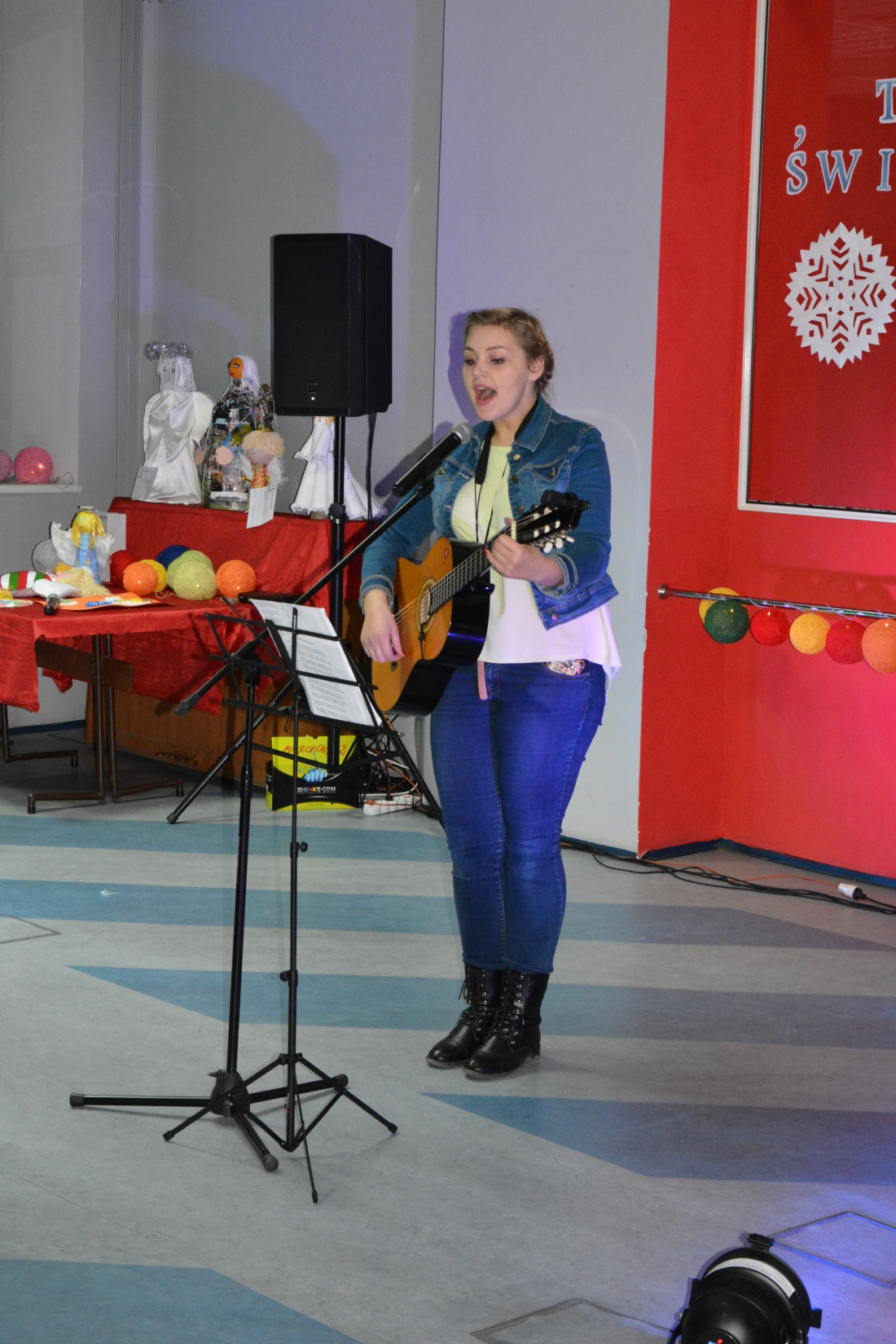 W świąteczny nastrój gości wprowadziła Monika Brzezińska z LO im. Jarosława Iwaszkiewicza, która zaśpiewała kilka tradycyjnych kolęd przy własnym akompaniamencie gitarowym.