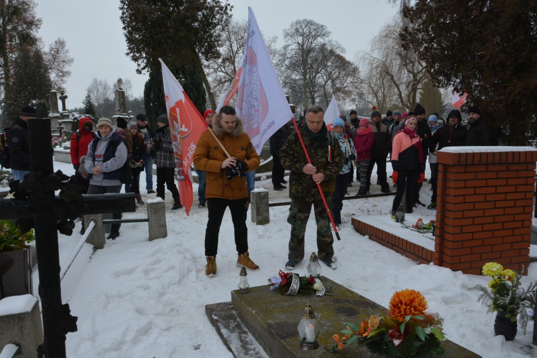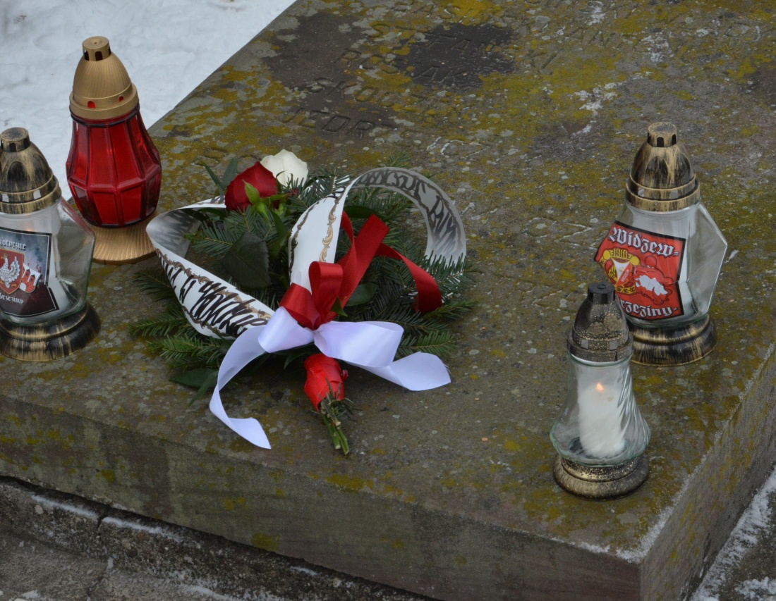 Przed wyruszeniem w kilkugodzinną trasę na cmentarzu katolickim w Brzezinach zebrani złożyli kwiaty i zapalili znicze na mogile powstańców poległych w walkach pod Dobrą oraz grobie Józefa Skrzyńskiego - dowódcy oddziału powstańczego.