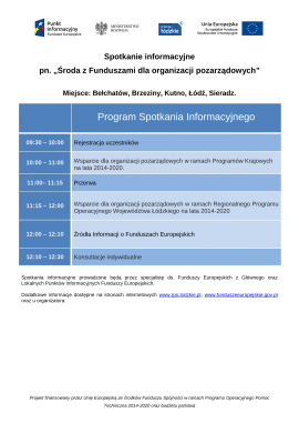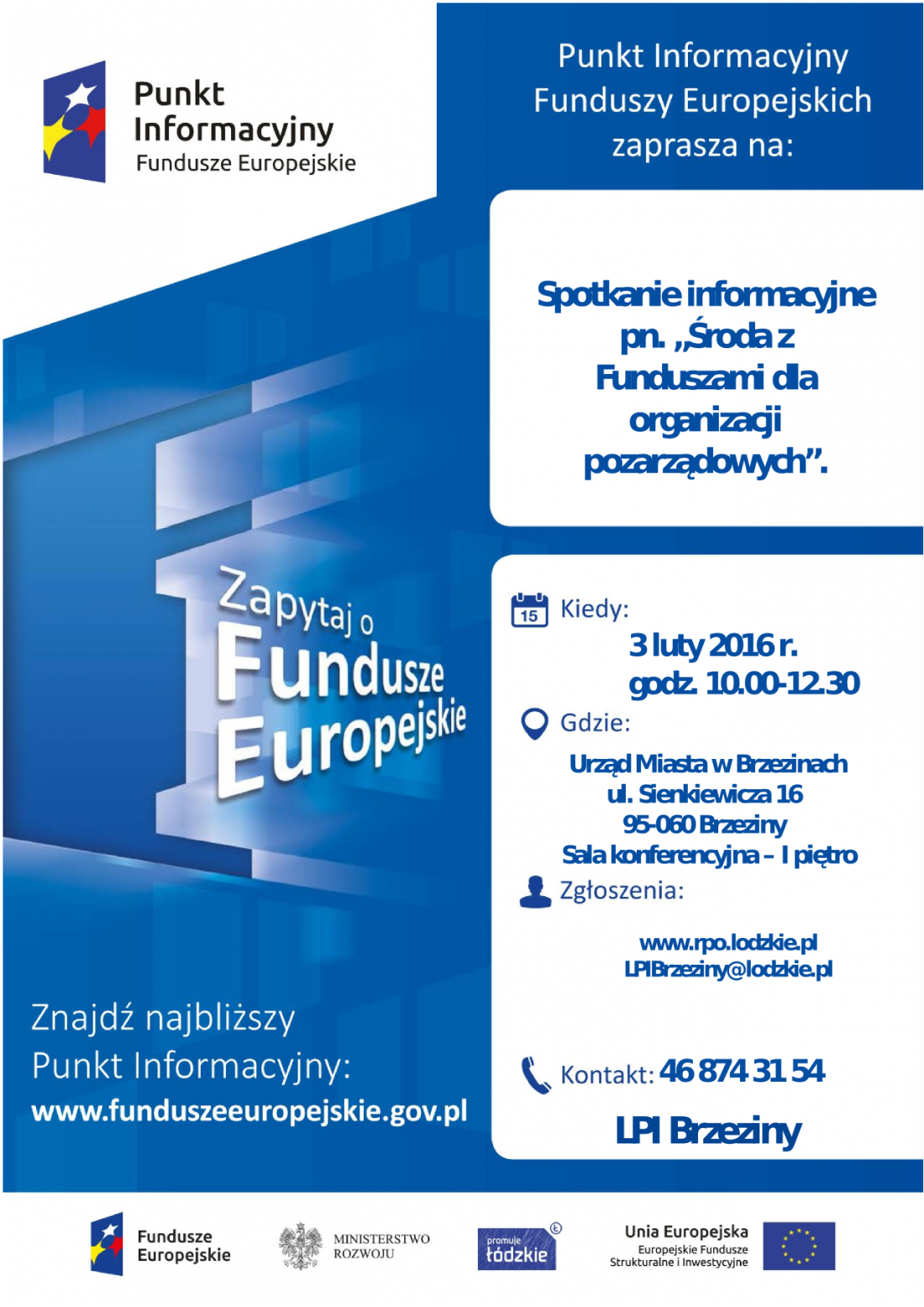Zapraszamy na spotkanie informacyjne pn. „Środa z Funduszami dla organizacji pozarządowych”, które odbędzie się dnia 3 lutego 2016 roku.