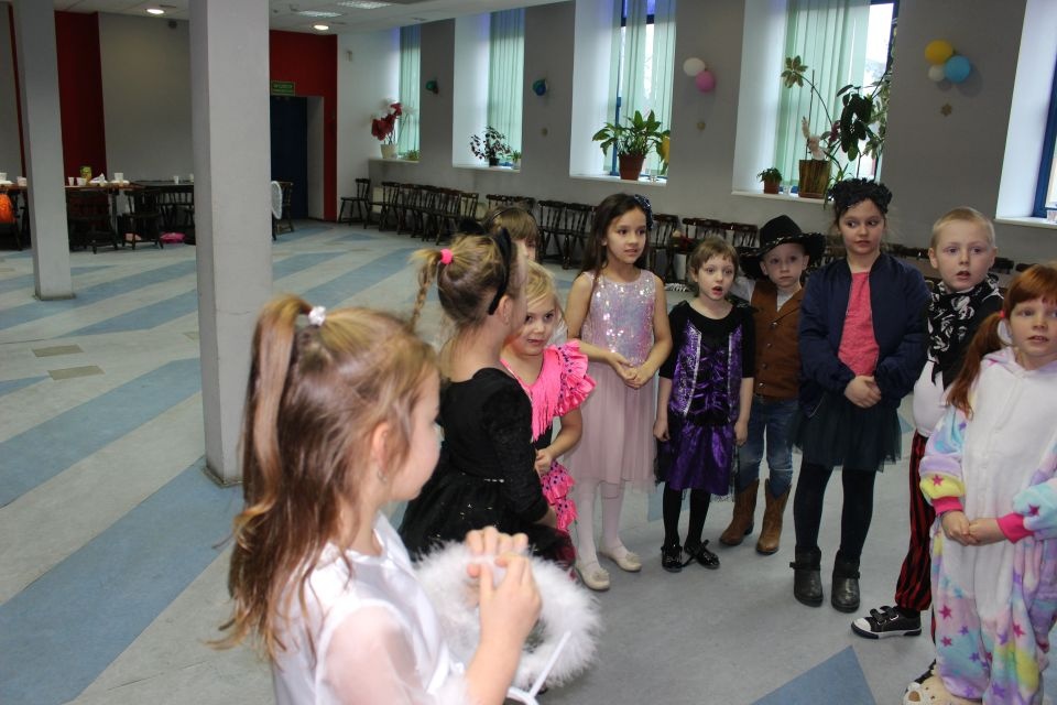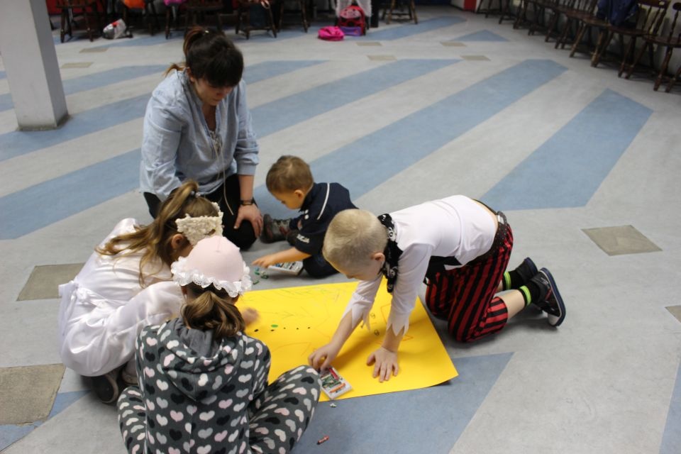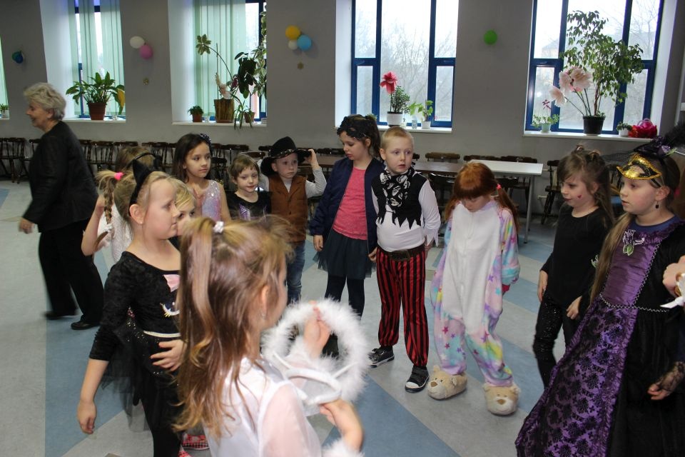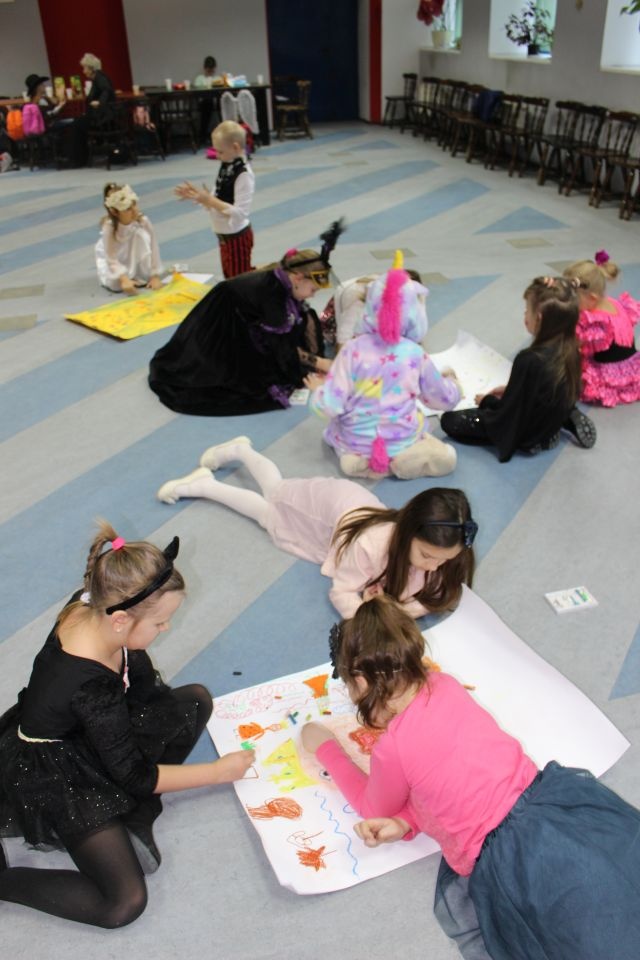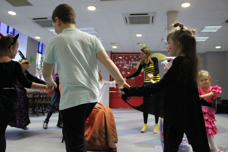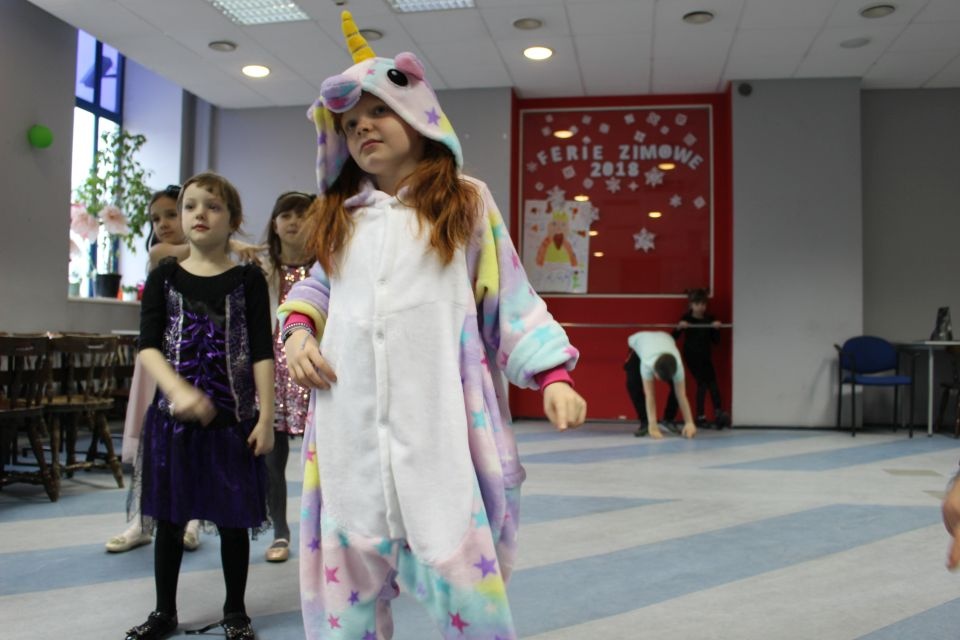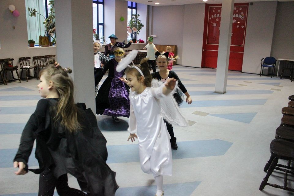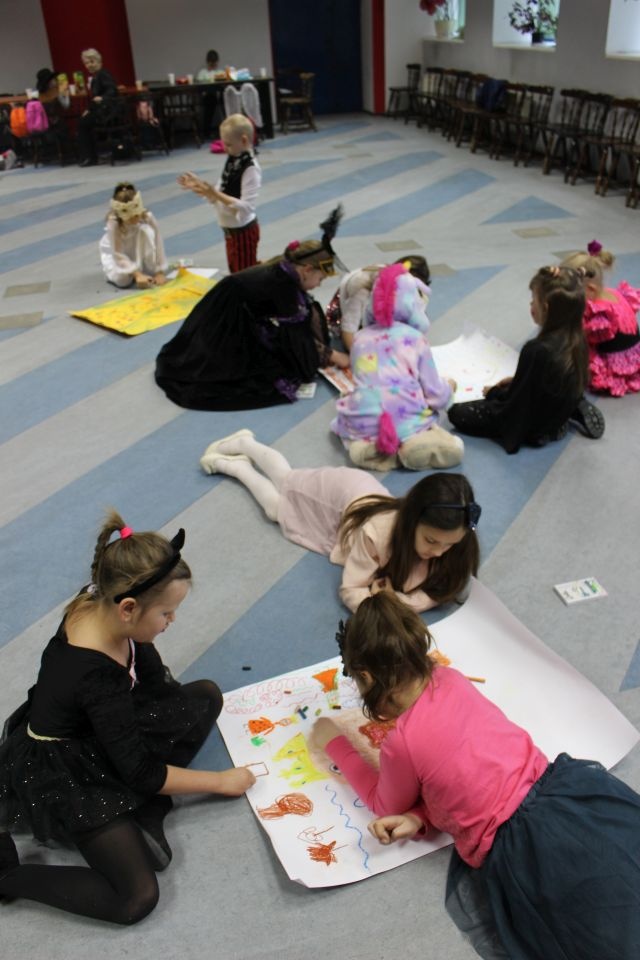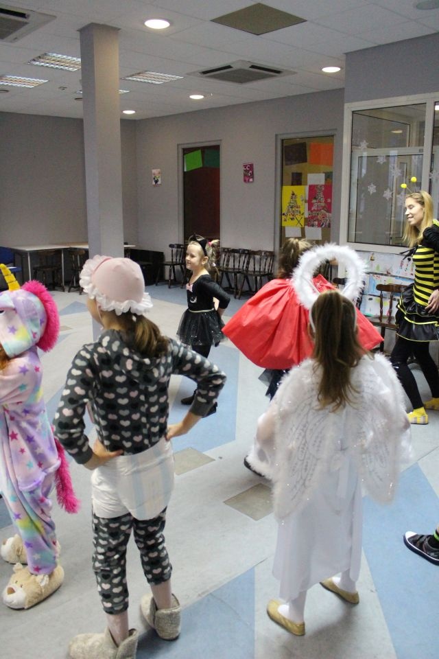 Kolejnego dnia dzieci przygotowywały się do wielkiego finału. Pod okiem Grażyny Bosiackiej wykonywały ozdoby i stroje karnawałowe. Radość z samodzielnej pracy i efekt kreatywnego zastosowania materiałów takich, jak bibuła czy brystol były ogromne. Kolorowe spódnice, maski, kwiaty i peleryny posłużyły podczas zimowego balu karnawałowego.