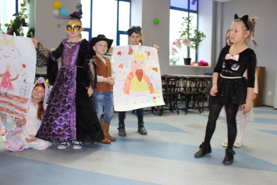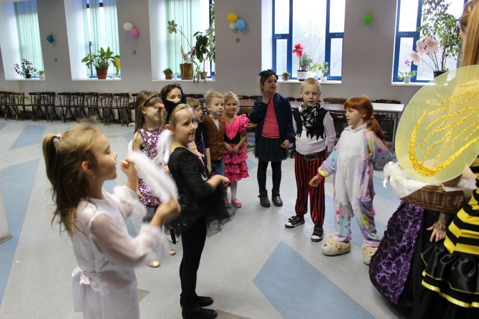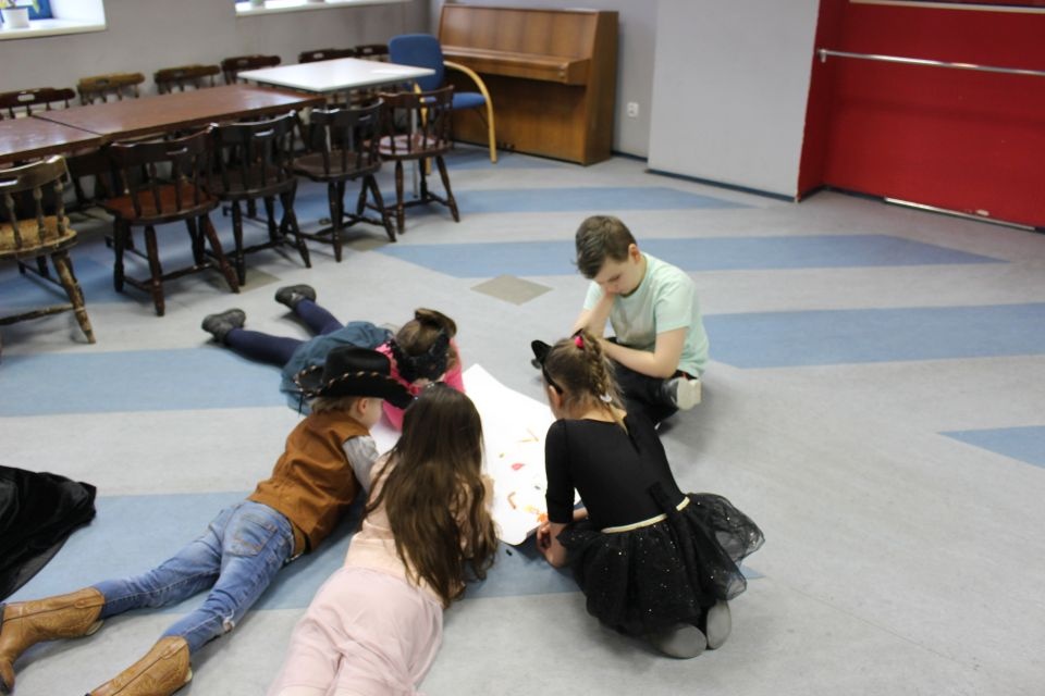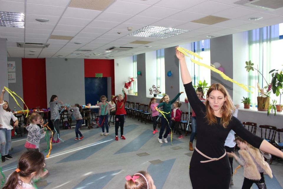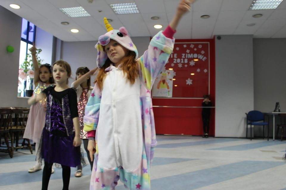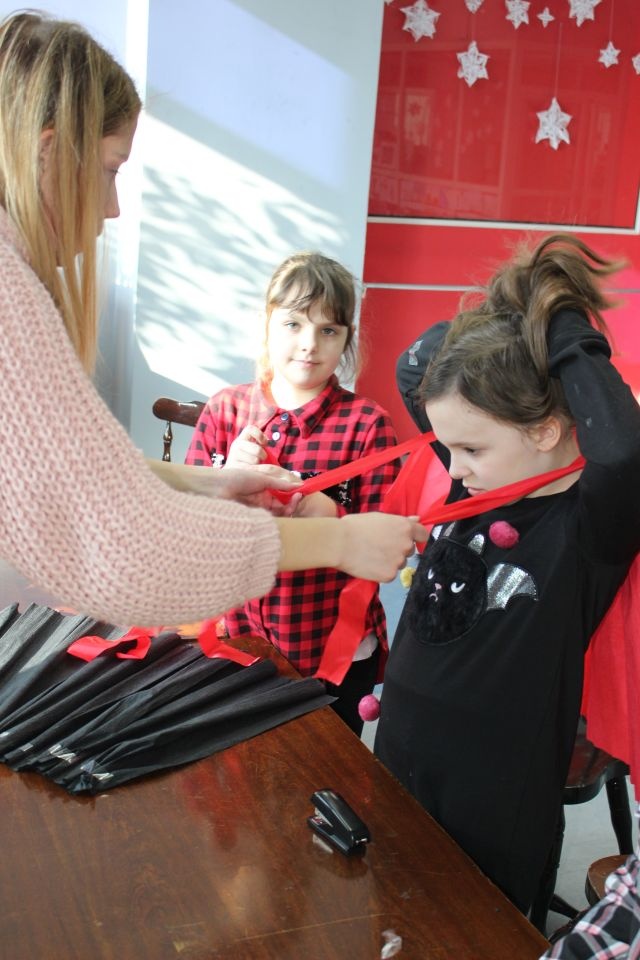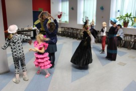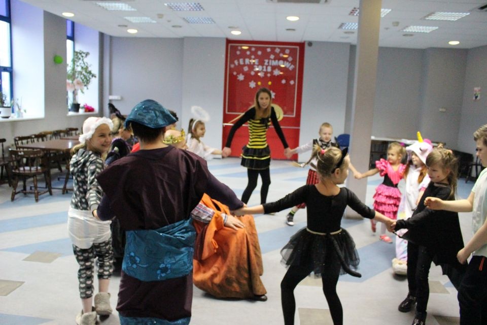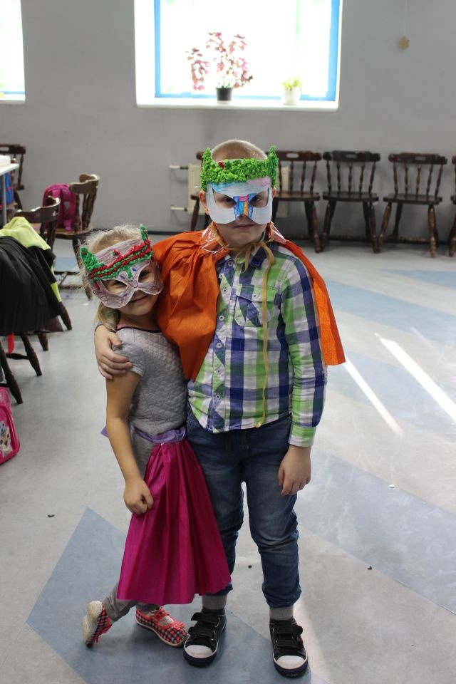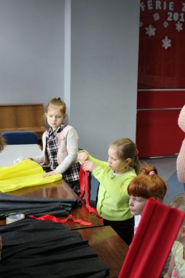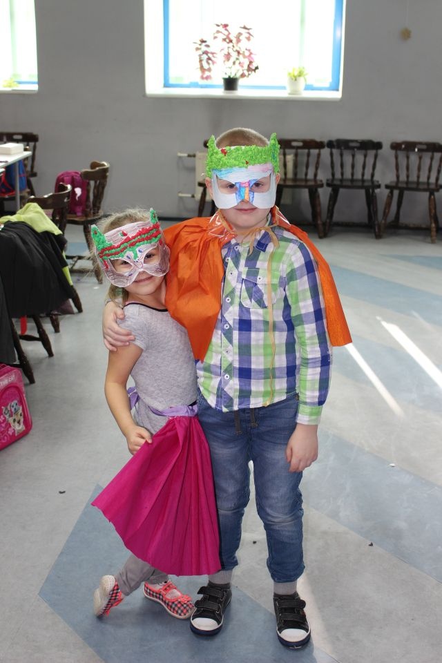 Kolejnego dnia dzieci przygotowywały się do wielkiego finału. Pod okiem Grażyny Bosiackiej wykonywały ozdoby i stroje karnawałowe. Radość z samodzielnej pracy i efekt kreatywnego zastosowania materiałów takich, jak bibuła czy brystol były ogromne. Kolorowe spódnice, maski, kwiaty i peleryny posłużyły podczas zimowego balu karnawałowego.