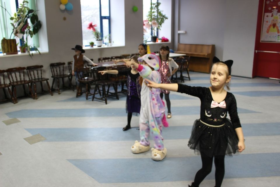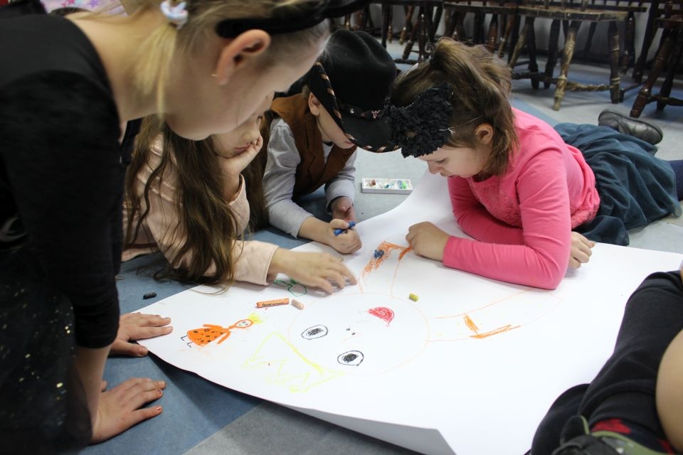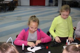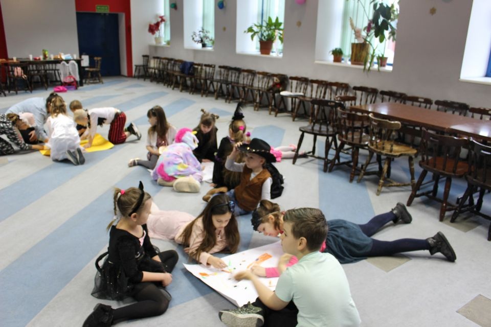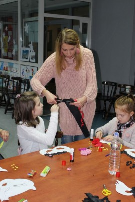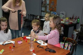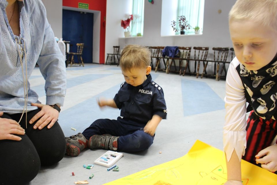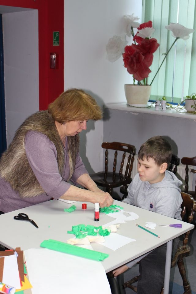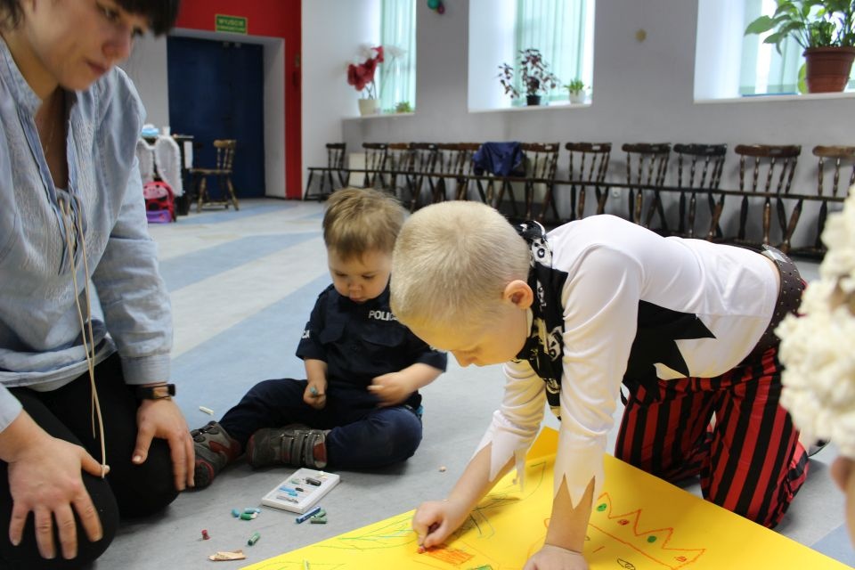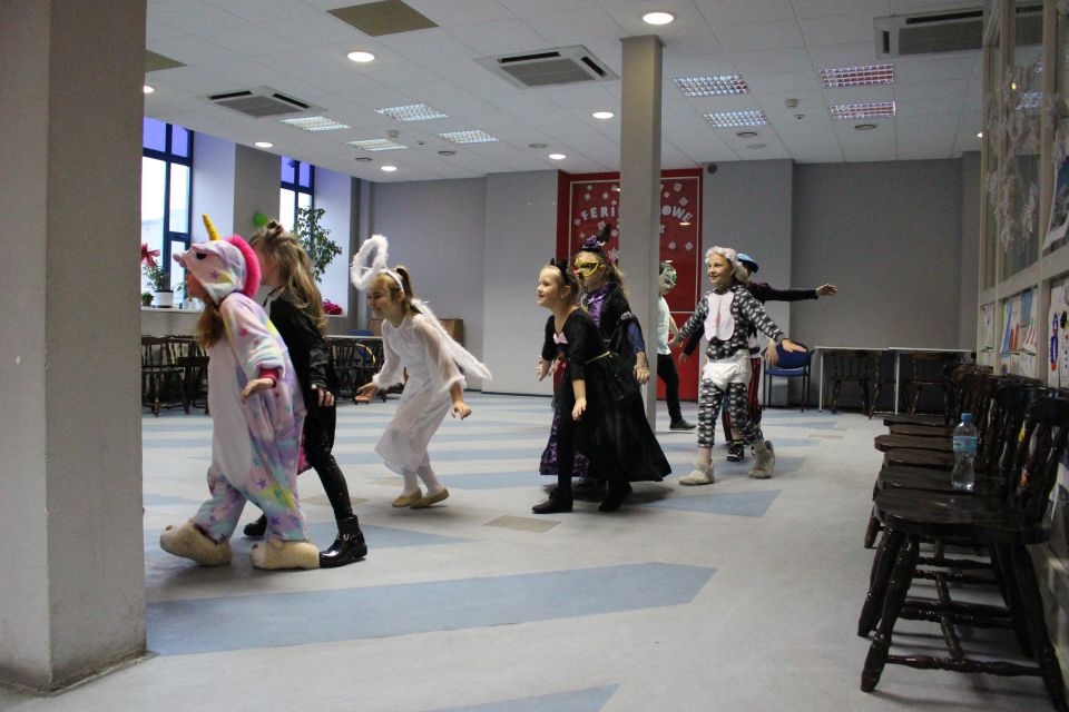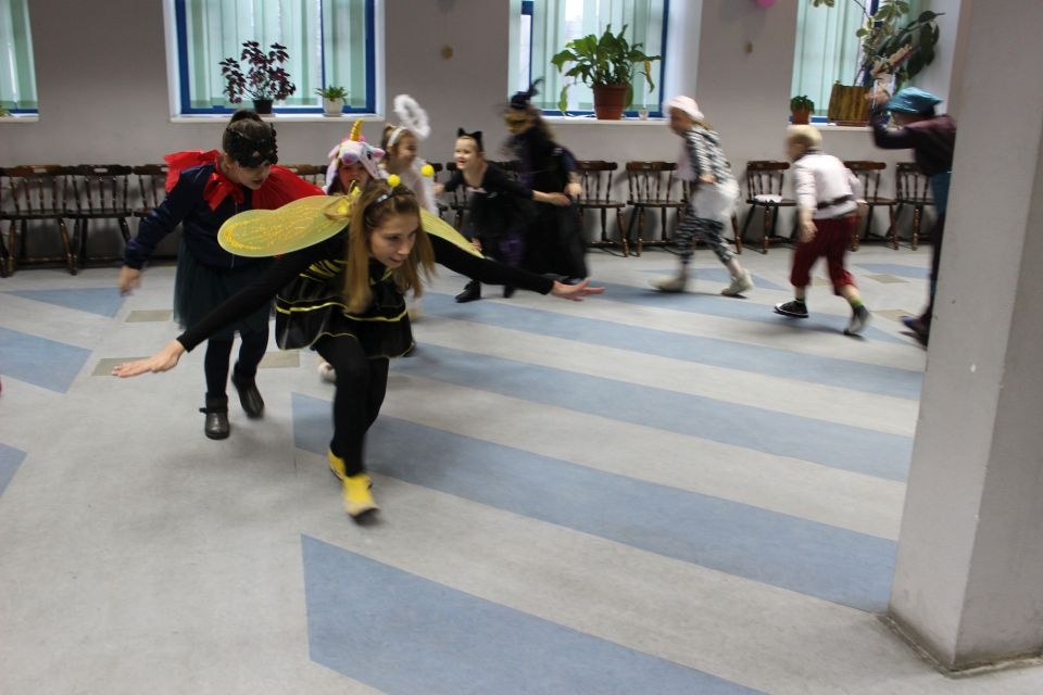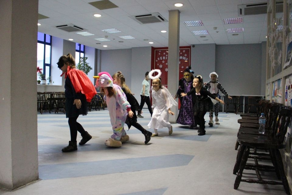 Kolejnego dnia dzieci przygotowywały się do wielkiego finału. Pod okiem Grażyny Bosiackiej wykonywały ozdoby i stroje karnawałowe. Radość z samodzielnej pracy i efekt kreatywnego zastosowania materiałów takich, jak bibuła czy brystol były ogromne. Kolorowe spódnice, maski, kwiaty i peleryny posłużyły podczas zimowego balu karnawałowego.