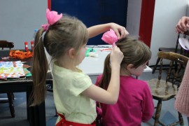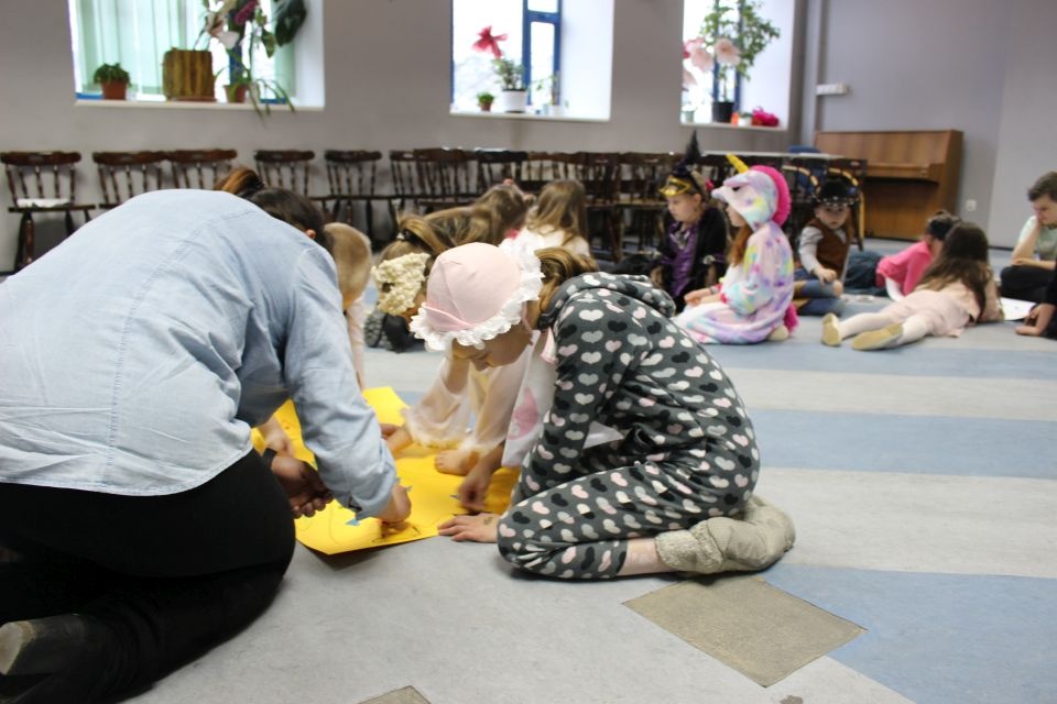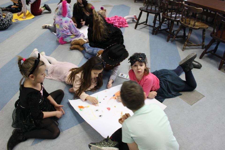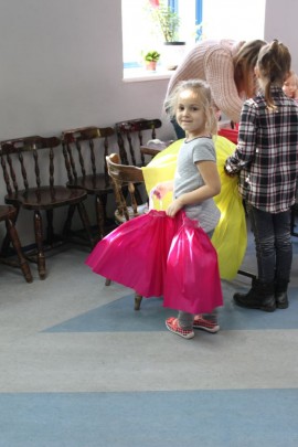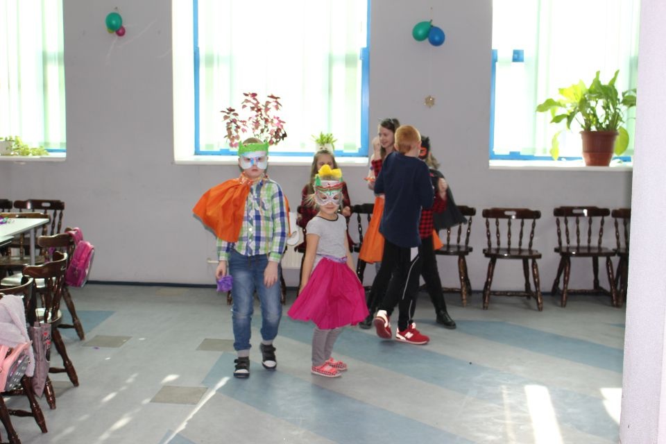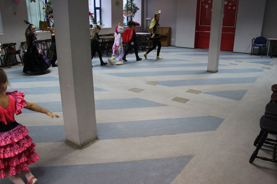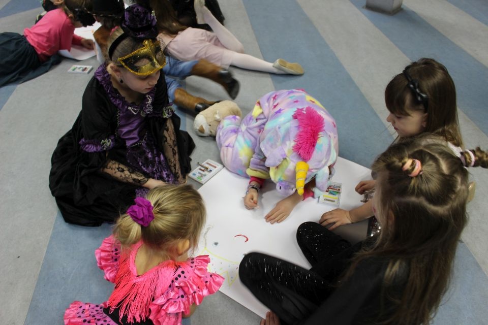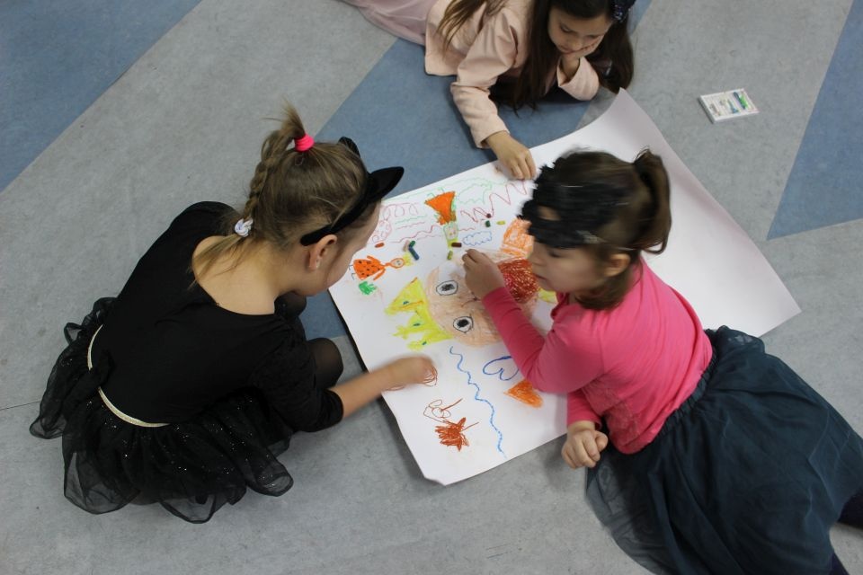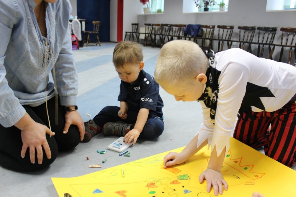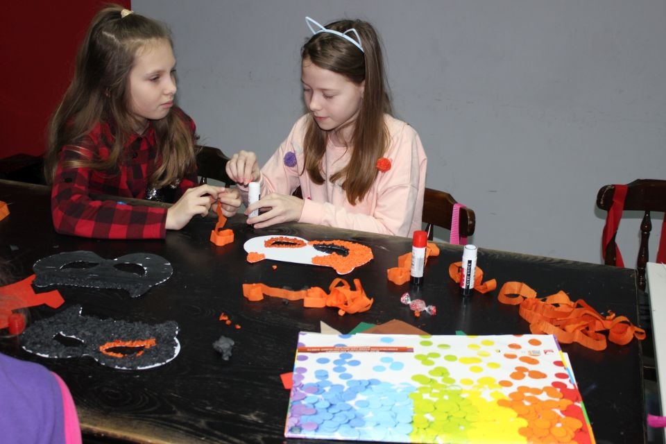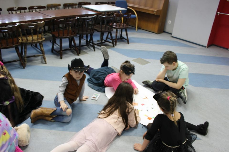 Kolejnego dnia dzieci przygotowywały się do wielkiego finału. Pod okiem Grażyny Bosiackiej wykonywały ozdoby i stroje karnawałowe. Radość z samodzielnej pracy i efekt kreatywnego zastosowania materiałów takich, jak bibuła czy brystol były ogromne. Kolorowe spódnice, maski, kwiaty i peleryny posłużyły podczas zimowego balu karnawałowego.