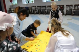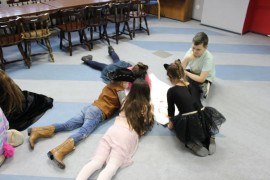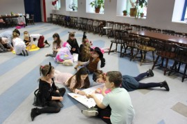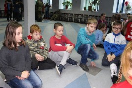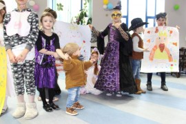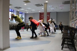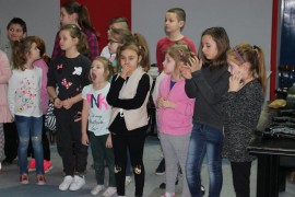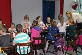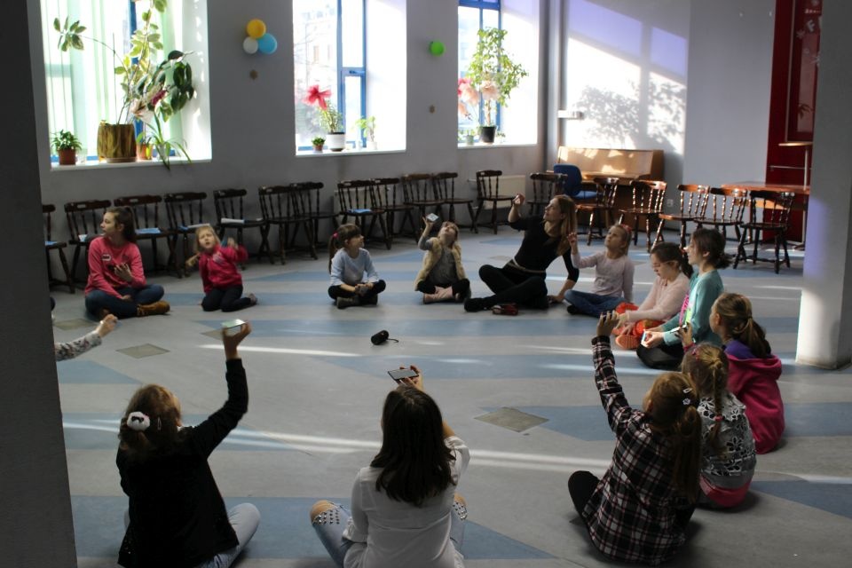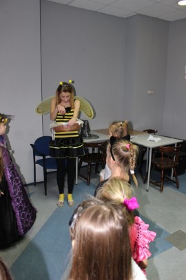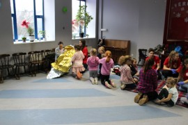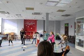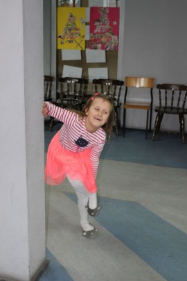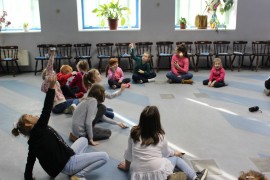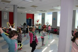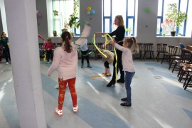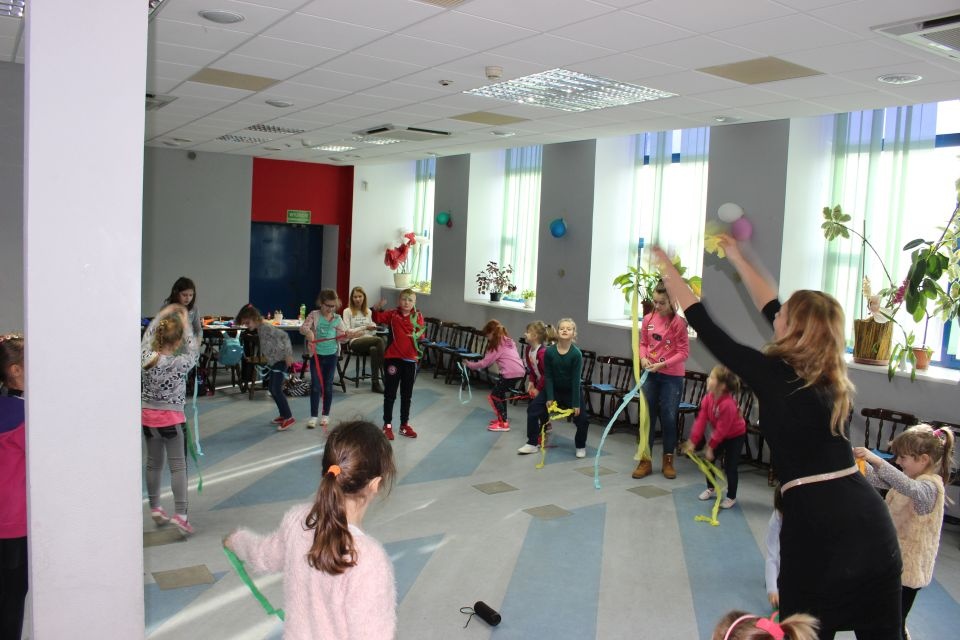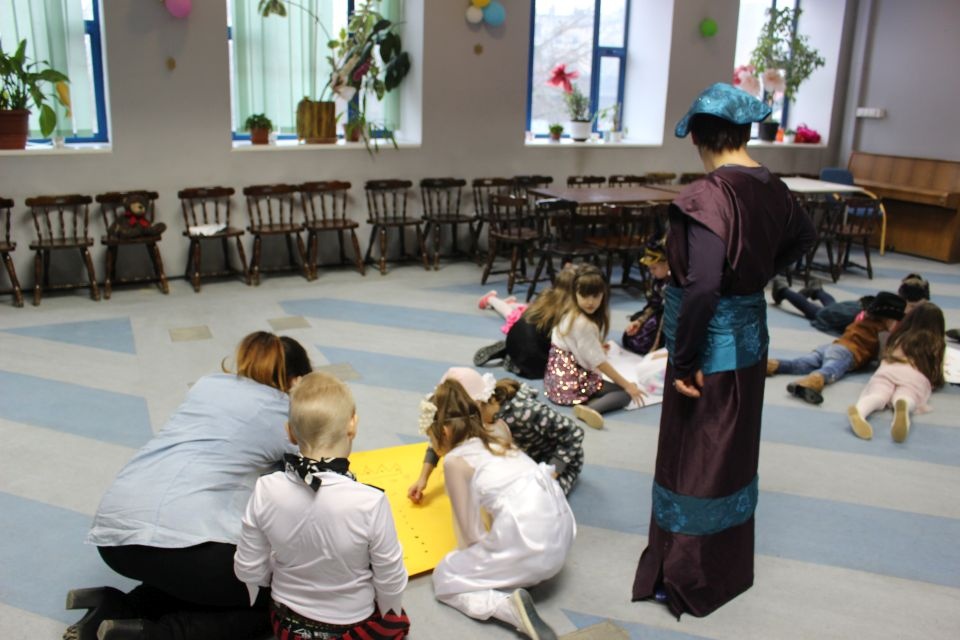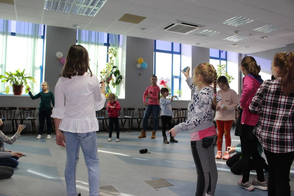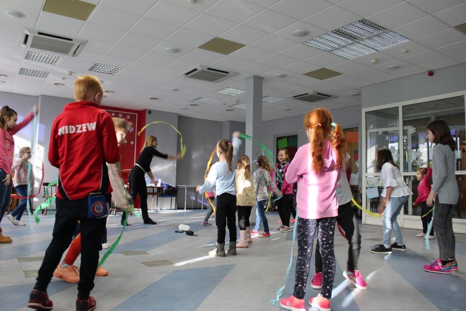 Podczas spotkania z Agatą Ostrowską z Teatru Muzycznego w Łodzi dzieci, w formie zabawy, uczyły się poprawnego wymawiania zgłosek „sz”, „cz” – one zazwyczaj sprawiają najwięcej problemów. Poza tym zajęcia były przepełnione aktywnościami wokalno-ruchowymi.