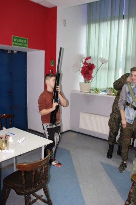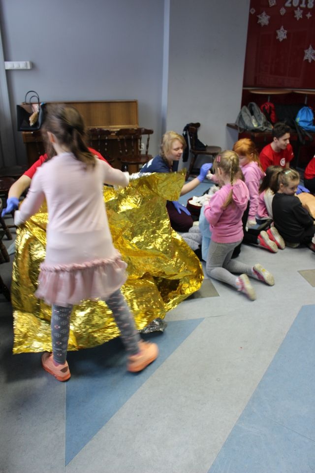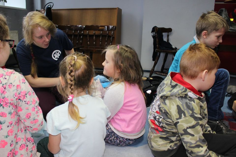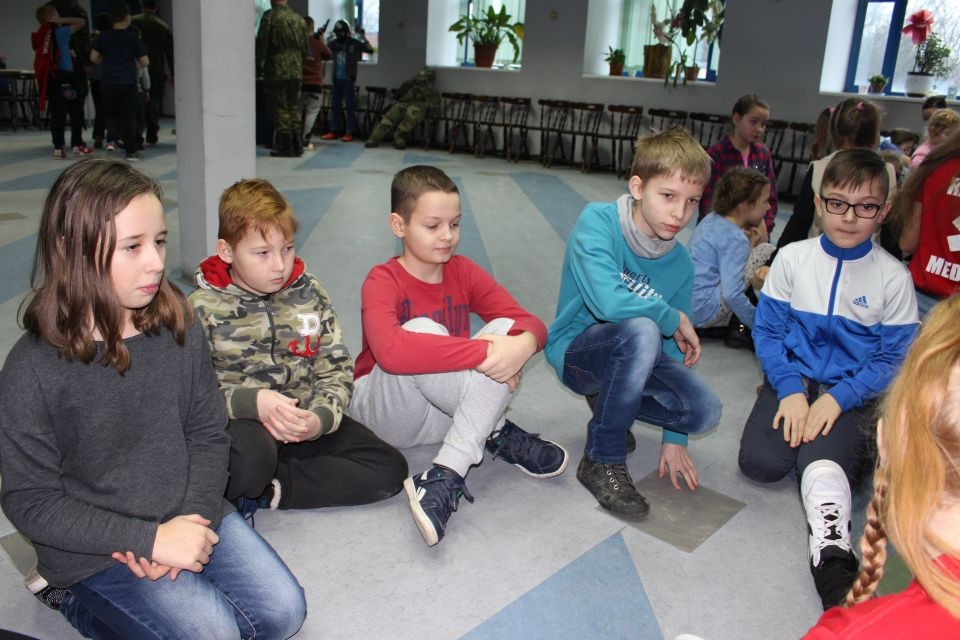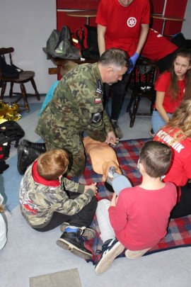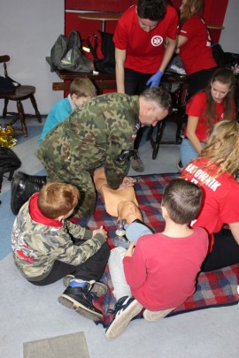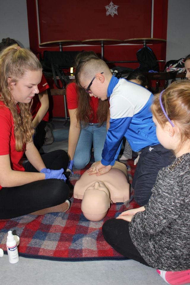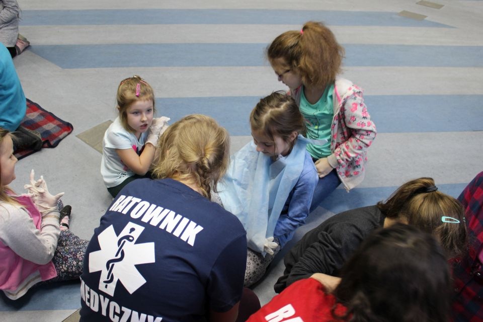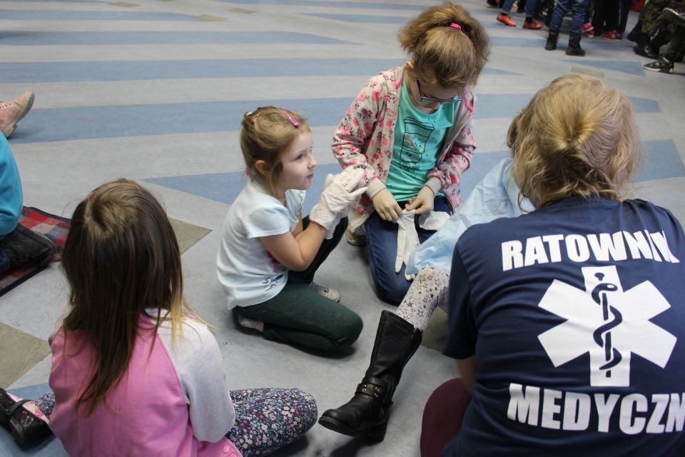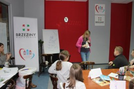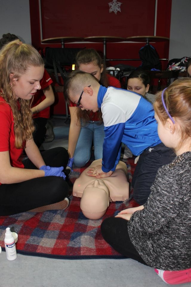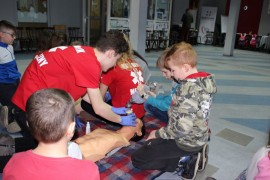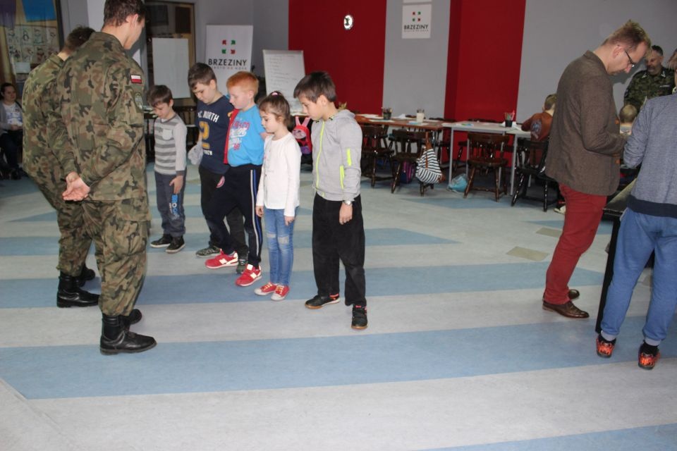 Zajęcia o bezpieczeństwie były bardzo różnorodne. Centrum odwiedzili z prelekcją strażacy z Państwowej Powiatowej Straży Pożarnej w Brzezinach. Zaprezentowali osprzętowanie samochodu, który wykorzystują w różnego rodzaju akcjach ratowniczych, m.in. pożarach czy wypadkach samochodowych. Strażacy zademonstrowali dzieciom, jak wygląda pomoc poszkodowanemu i przede wszystkich przypomnieli, że podczas wypoczynku najważniejsze jest bezpieczeństwo. W sali Centrum czekały kolejne atrakcje. Dzięki współpracy ze Związkiem Strzeleckim „Strzelec” i uczniami z Liceum Ogólnokształcącego im. J. Iwaszkiewicza w Brzezinach, dzieci mogły obejrzeć pokazy pierwszej pomocy – uczyły się jak reagować w momencie wypadku, jak udzielać pierwszej pomocy, co robić i jakie czynności wykonać. Ponadto uczniowie z klasy mundurowej zaprezentowali elementy musztry. Tego dnia Centrum odwiedziły również dzieci i młodzież ze świetlicy środowiskowej „Świetlik”.