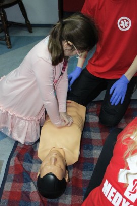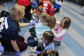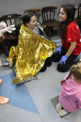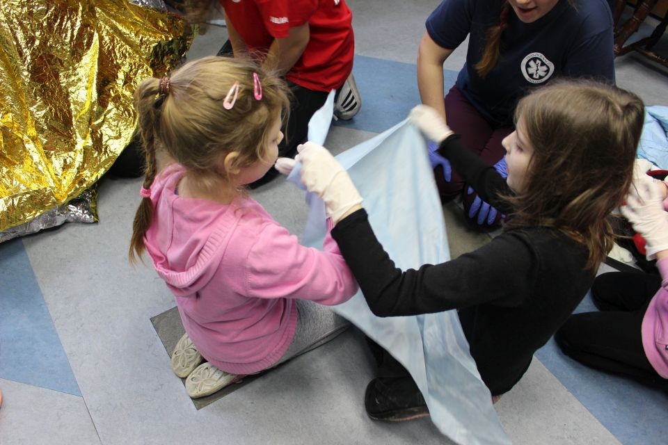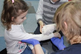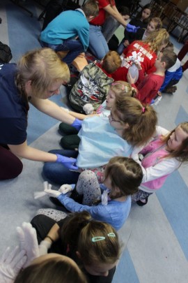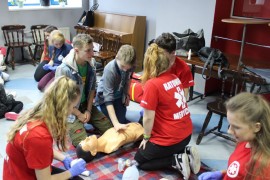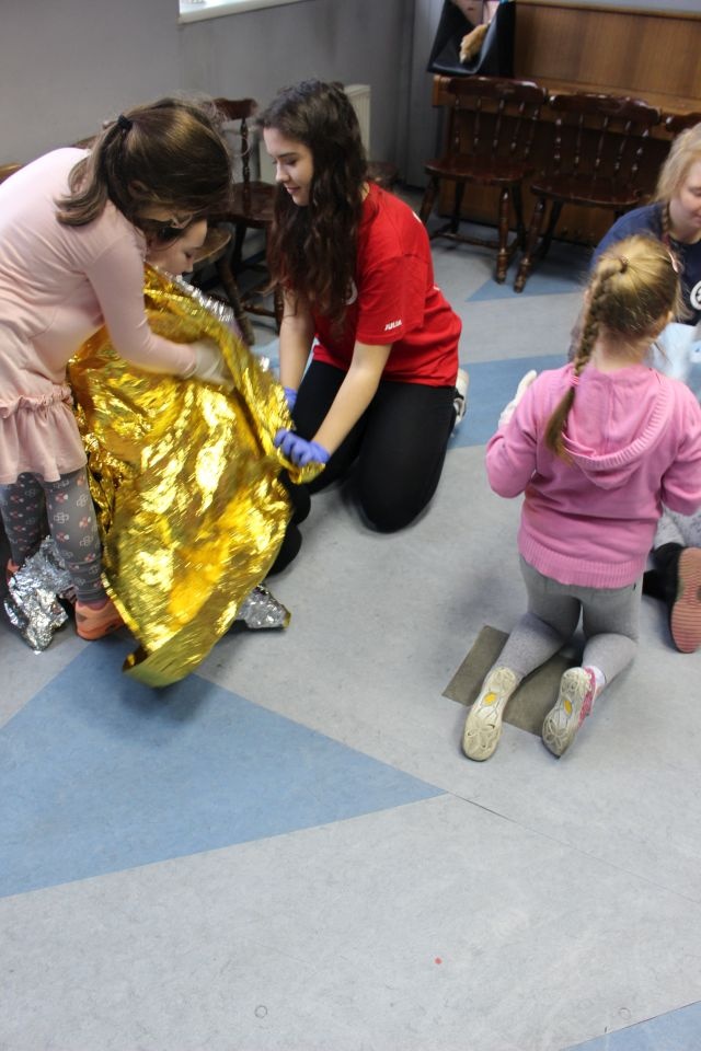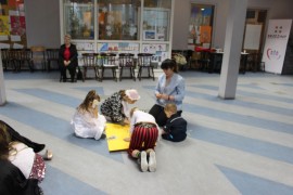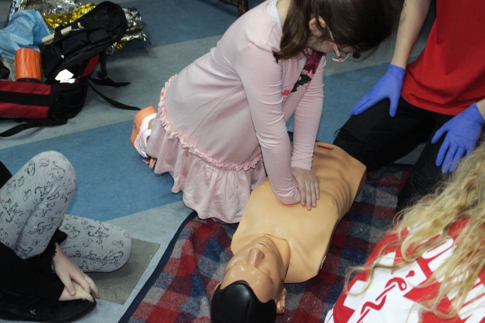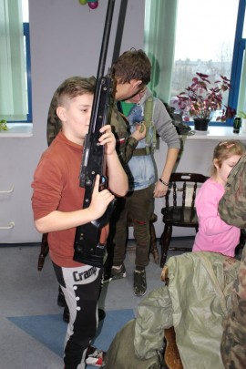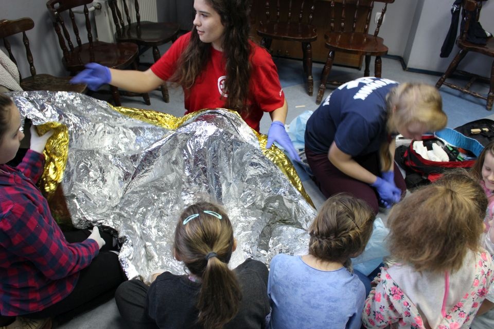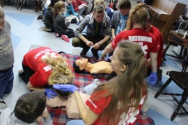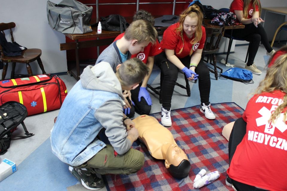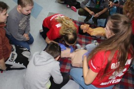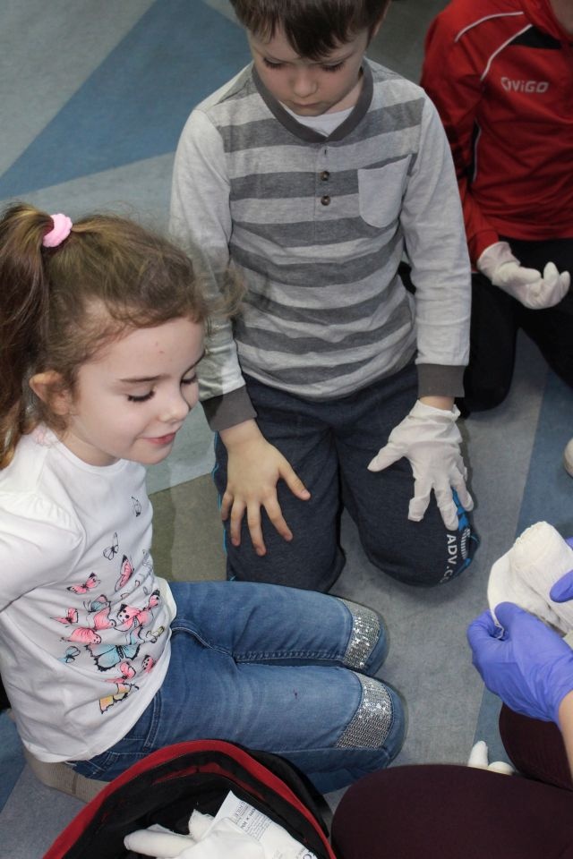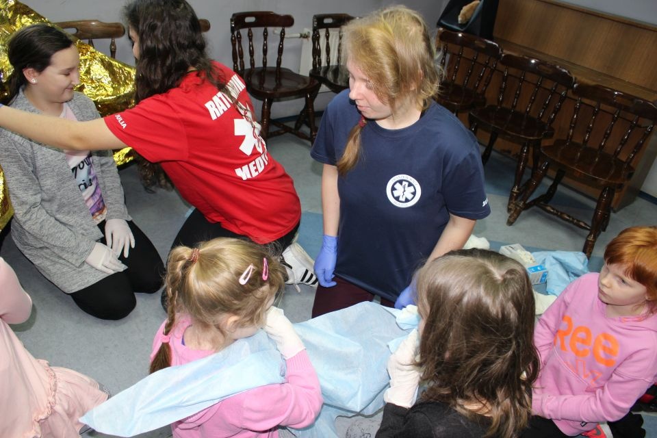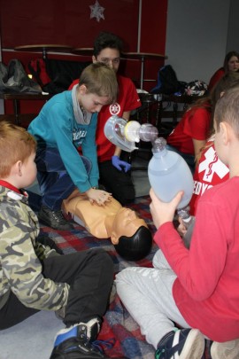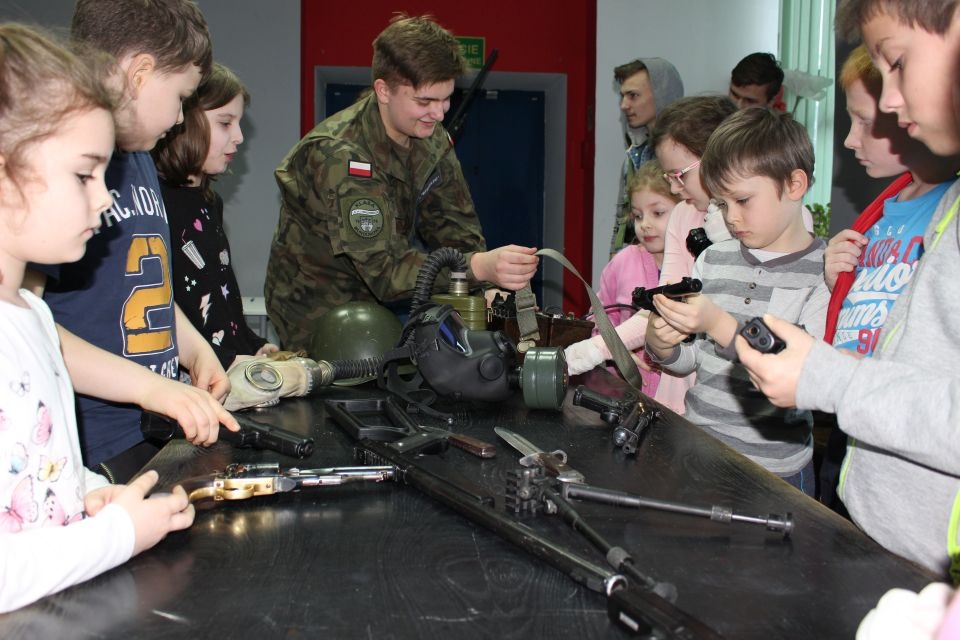Zajęcia o bezpieczeństwie były bardzo różnorodne. Centrum odwiedzili z prelekcją strażacy z Państwowej Powiatowej Straży Pożarnej w Brzezinach. Zaprezentowali osprzętowanie samochodu, który wykorzystują w różnego rodzaju akcjach ratowniczych, m.in. pożarach czy wypadkach samochodowych. Strażacy zademonstrowali dzieciom, jak wygląda pomoc poszkodowanemu i przede wszystkich przypomnieli, że podczas wypoczynku najważniejsze jest bezpieczeństwo. W sali Centrum czekały kolejne atrakcje. Dzięki współpracy ze Związkiem Strzeleckim „Strzelec” i uczniami z Liceum Ogólnokształcącego im. J. Iwaszkiewicza w Brzezinach, dzieci mogły obejrzeć pokazy pierwszej pomocy – uczyły się jak reagować w momencie wypadku, jak udzielać pierwszej pomocy, co robić i jakie czynności wykonać. Ponadto uczniowie z klasy mundurowej zaprezentowali elementy musztry. Tego dnia Centrum odwiedziły również dzieci i młodzież ze świetlicy środowiskowej „Świetlik”.