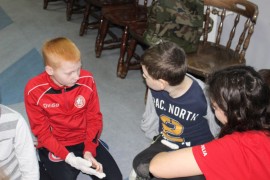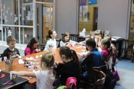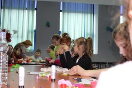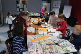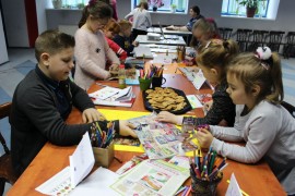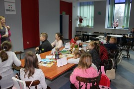W drugim tygodniu ferii Centrum przygotowało warsztaty z dietetykiem. Anna Zielińska wyjaśniała dzieciom zasady zdrowego odżywiania i tłumaczyła jakie zagrożenie niesie jedzenie fast food’ów i nadmiaru słodyczy. Uczestnicy samodzielnie wykonali piramidy żywieniowe, z uwzględnieniem ogólno przyjętych zasad.