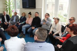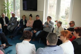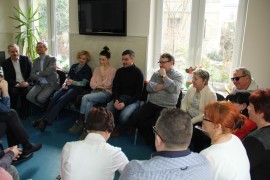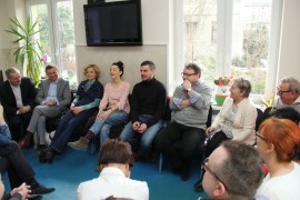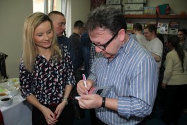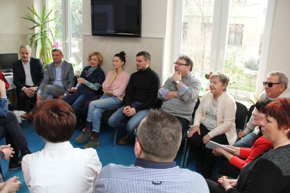 Spotkanie rozpoczęło się od przedstawienia gości przez prezes stowarzyszenia Wiolettę Bartyzel. Agnieszka Więdłocha w 2009 roku ukończyła łódzką szkołę filmową. Obecnie jest aktorką Teatru im. Stefana Jaracza w Łodzi, chociaż popularność przyniosły jej role w serialach „Czas honoru”, „M jak miłość” i „Lekarze”. Antoni Pawlicki wywodzi się z rodziny aktorskiej, jest synem operatorem Tadeusza Pawlickiego i wnukiem aktorki Barbary Rachwalskiej. Ukończył Akademie Teatralną w Warszawie. Zadebiutował w „Klanie”, chociaż pierwszą pełną rolę otrzymał w filmie „Z odzysku”, Najbardziej znany jest z ról w serialach „Na dobre i na złe”, „Ojciec Mateusz”, „Czas honoru” i „Komisarz Alex”.