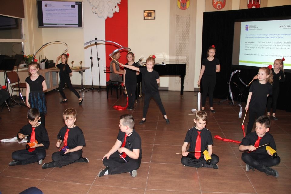 Po części oficjalnej nadszedł czas na ponad godzinny koncert, w którym wystąpili uczniowie Państwowej Szkoły Muzycznej I stopnia w Brzezinach. Koncert prowadzony przez Joannę Omąkowską-Marks rozpoczęła pokaz rytmiki w wykonaniu klasy pierwszej cyklu sześcioletniego. Po najmłodszych nadszedł czas na popis najlepszych uczniów szkoły, którzy w mistrzowski sposób prezentowali jak wiele już się nauczyli grając na fortepianie, skrzypcach, akordeonie, flecie, klarnecie czy też gitarze. Koncert zakończył występ chóru szkolnego, z którym wicepremier Piotr Gliński i posłowie Waldemar Buda i Robert Telus zrobili sobie wspólną pamiątkową fotografię.
