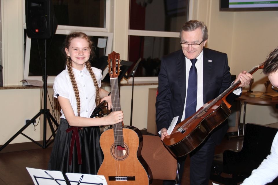 - Dzisiejsza uroczystość jest wynikiem determinacji i uporu w dążeniu do celu pani dyrektor i społeczności szkoły. Bez tego zaangażowania placówka tak by nie wyglądała, a my jako miasto nie mielibyśmy w czym pomagać. Za to dziękuję. Brzeziny są słynne z ekonomi społecznej, dzięki której znajdujemy się w sali konferencyjnej wyremontowanej przez osoby wykluczone społecznie, a za chwilę wysłuchamy pięknego koncertu. Społeczność szkoły muzycznej jest w naszym lokalnym środowisku fundamentem na który możemy liczyć - powiedział Burmistrz Marcin Pluta.