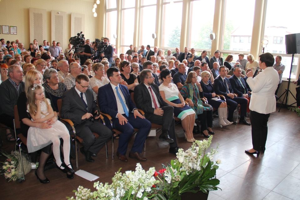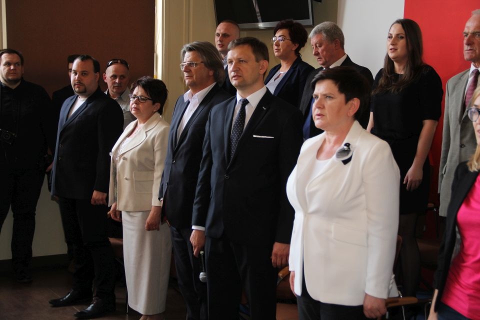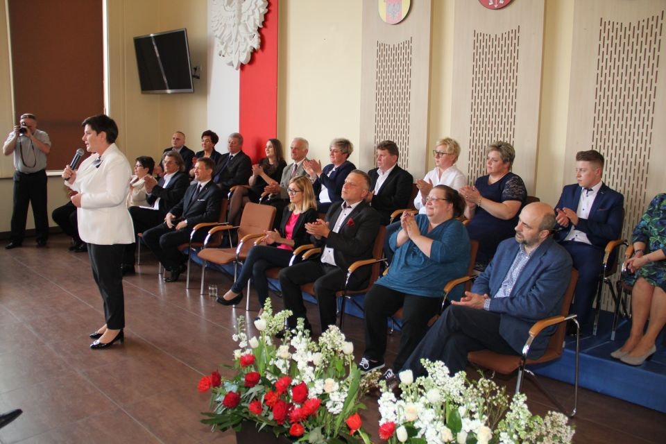 Wszystkich przybyłych, w tym posłów reprezentujących także ziemię brzezińską: Waldemara Budę oraz Alicję Kaczorowską, przywitał Marcin Pluta Burmistrz Brzezin. Burmistrz podziękował Pani Wicepremier za rządowe dotacje, dzięki którym miasto może skuteczniej realizować wiele projektów, przede wszystkim o charakterze społecznym. Mówił również o dobrej współpracy z radnymi Prawa i Sprawiedliwości Piotrem Adamczykiem, Wiesławem Stasiakiem z Sejmiku Województwa Łódzkiego i Radosławem Marcem z Rady Miejskiej w Łodzi. Spotkanie rozpoczęło się od wspólnie odśpiewanego hymnu państwowego.