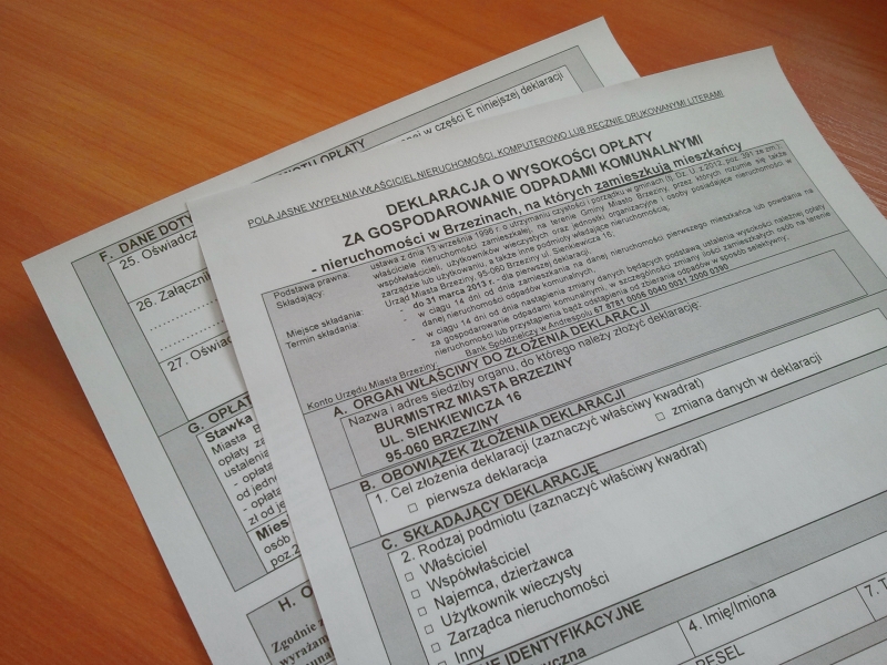 Szanowni Mieszkańcy, przypominamy o konieczności złożenia pierwszej deklaracji o wysokości opłaty za gospodarowanie odpadami komunalnymi.