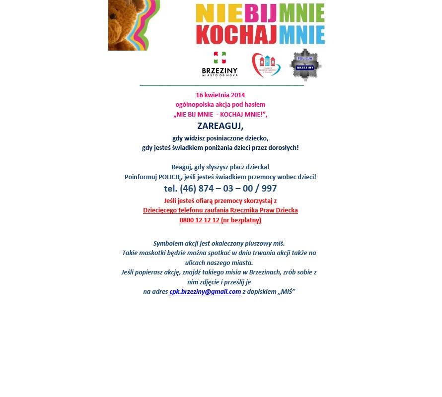 Ogólnopolska akcja NIE BIJ MNIE - KOCHAJ MNIE