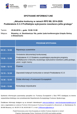 Spotkanie odbędzie się w sali konferencyjnej Urzędu Gimny Brzeziny (ul. H. Sienkiewicza 16A) 25 kwietni 2016 r w godzinach od 10.00 do 13.00.